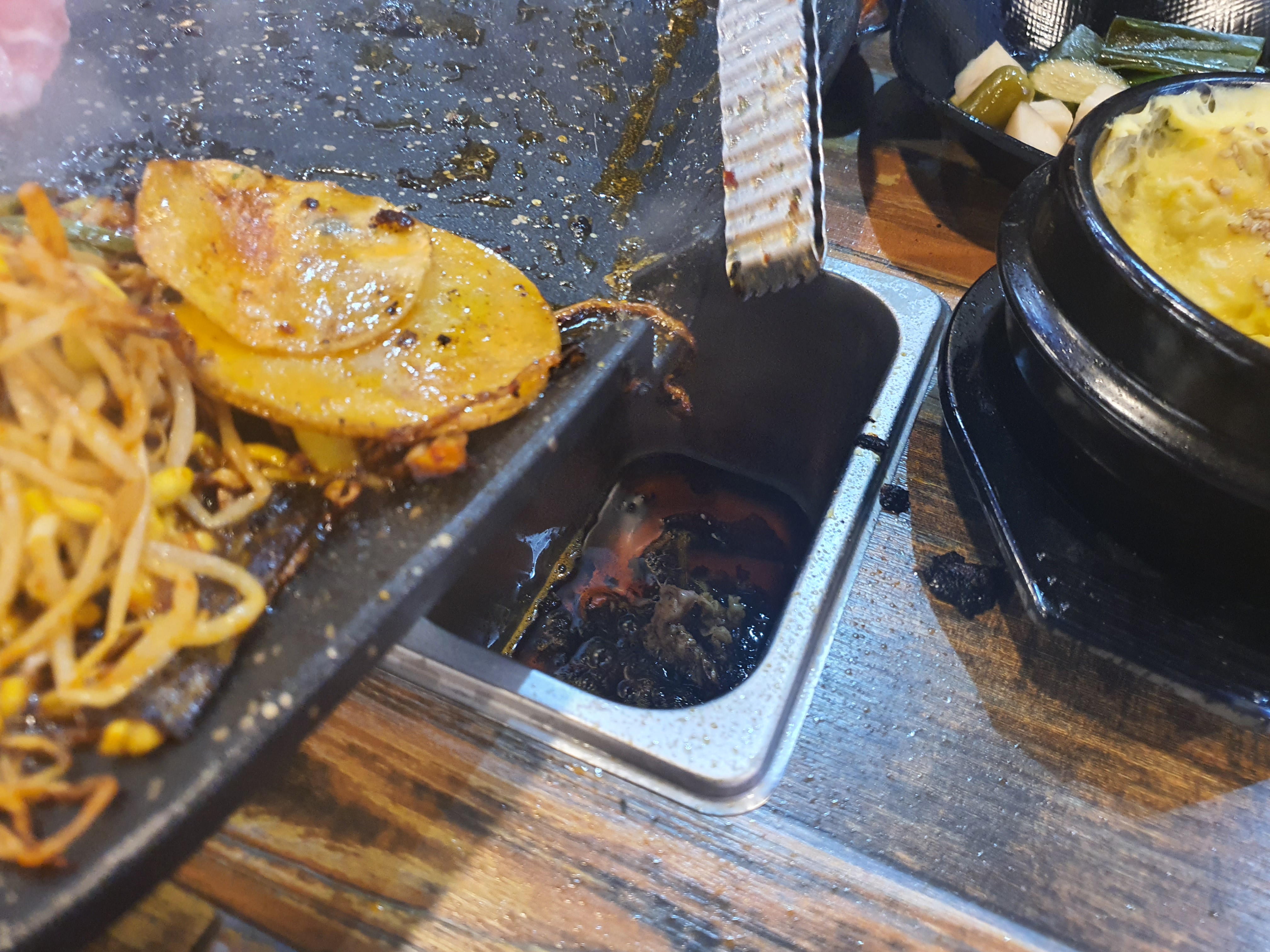 이렇게 구워진 대패삼겹살의 기름 덕분에 김치 그리고 콩나물 여러가지 재료에 스며들어 한층 더 맛있게 먹었습니다.