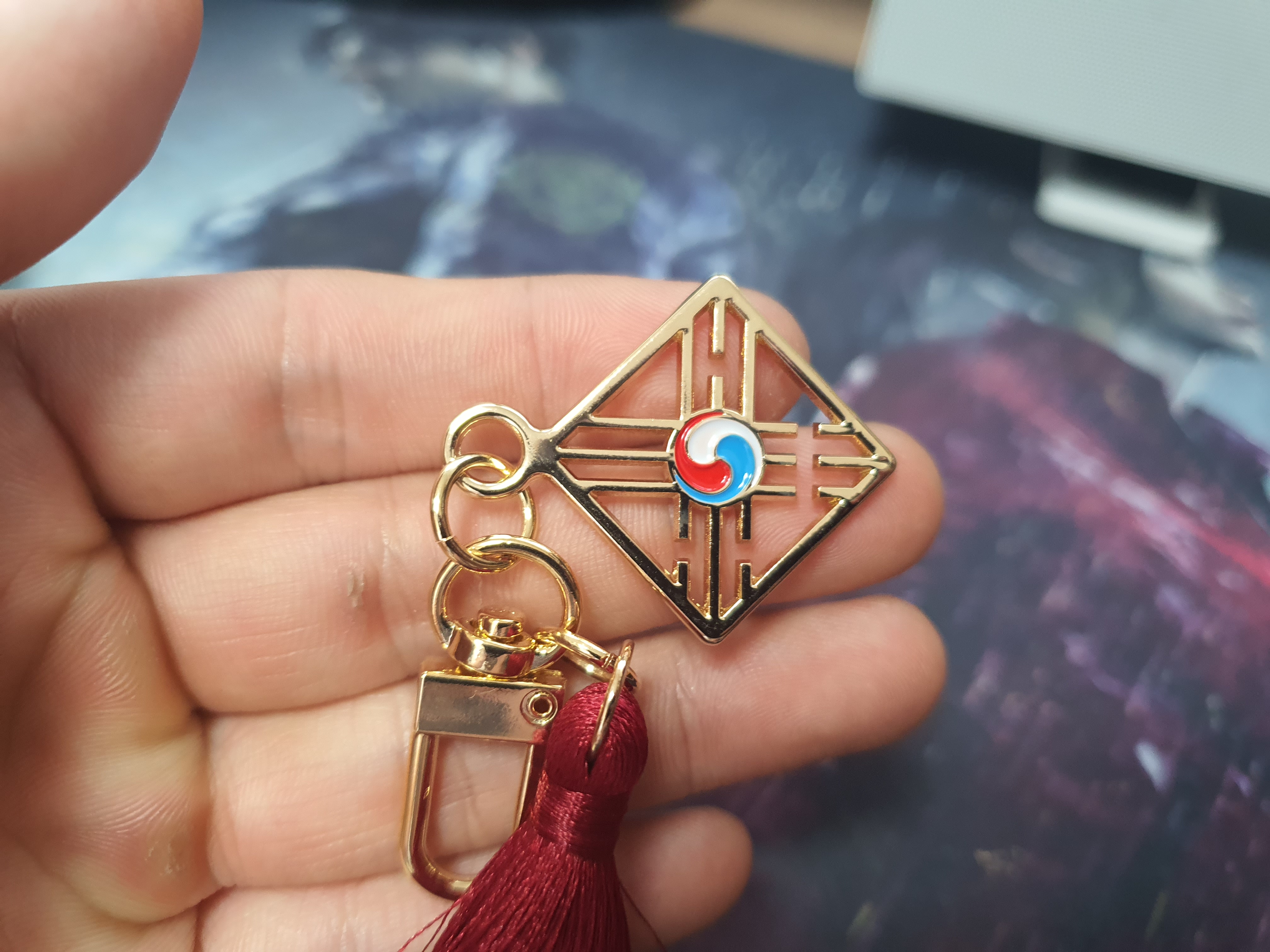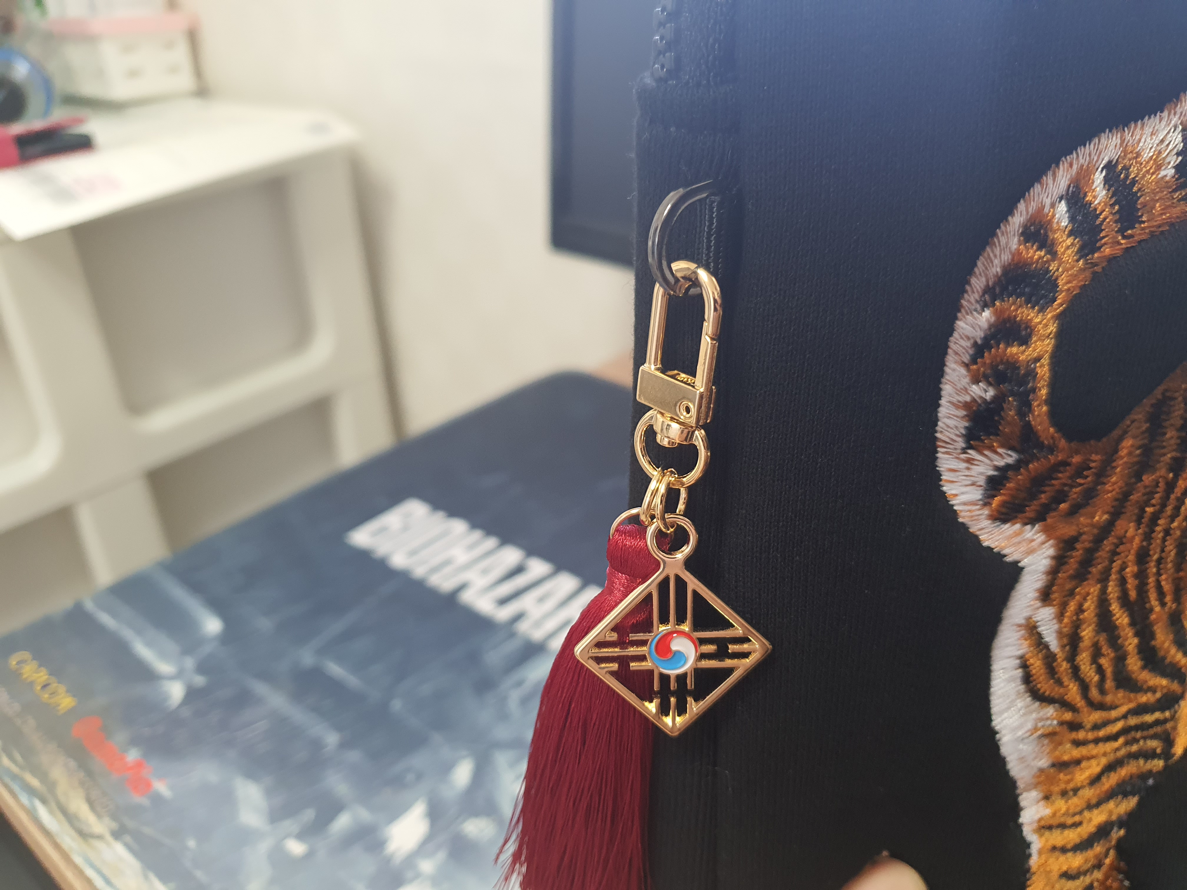 조선스러운 키링을 파우치백에 연결해준 모습입니다.