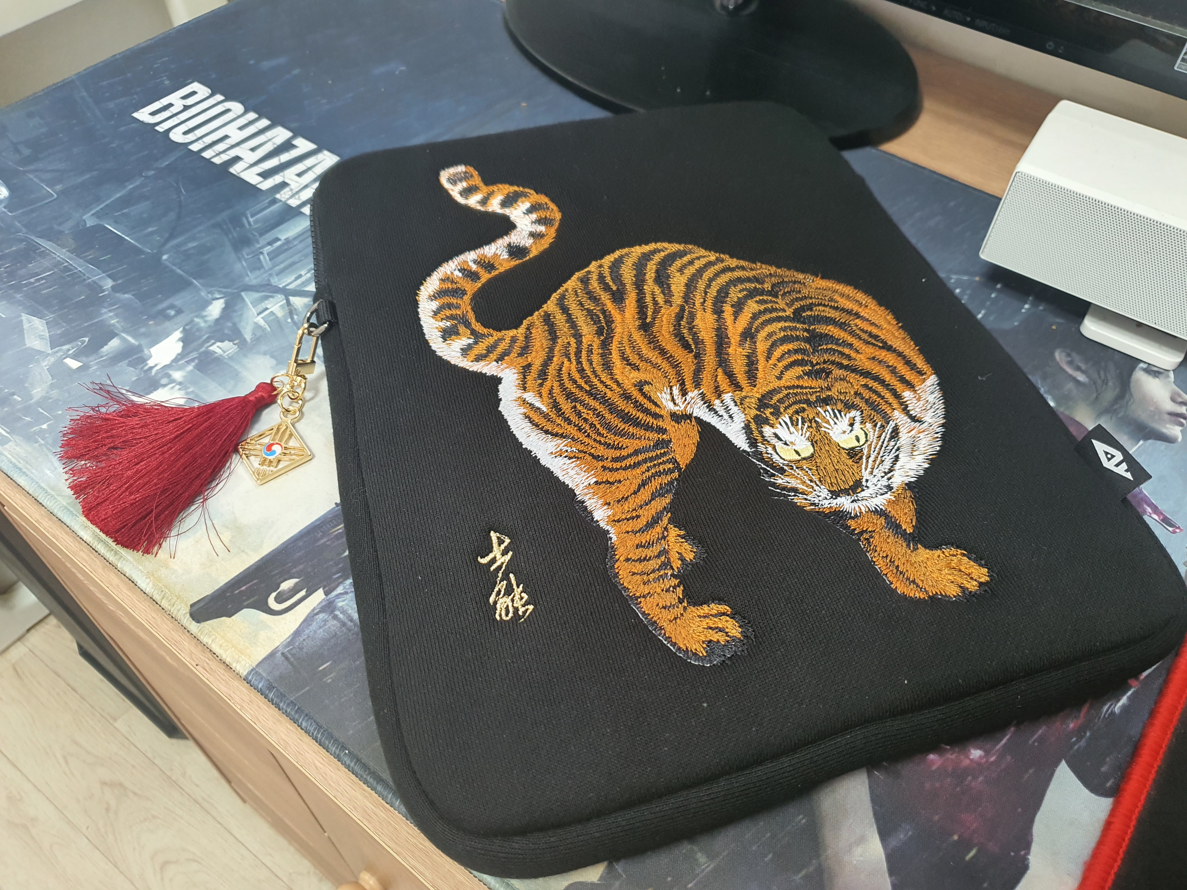 호랑이의 자수 디테일이 아주 디테일하며 촘촘합니다.