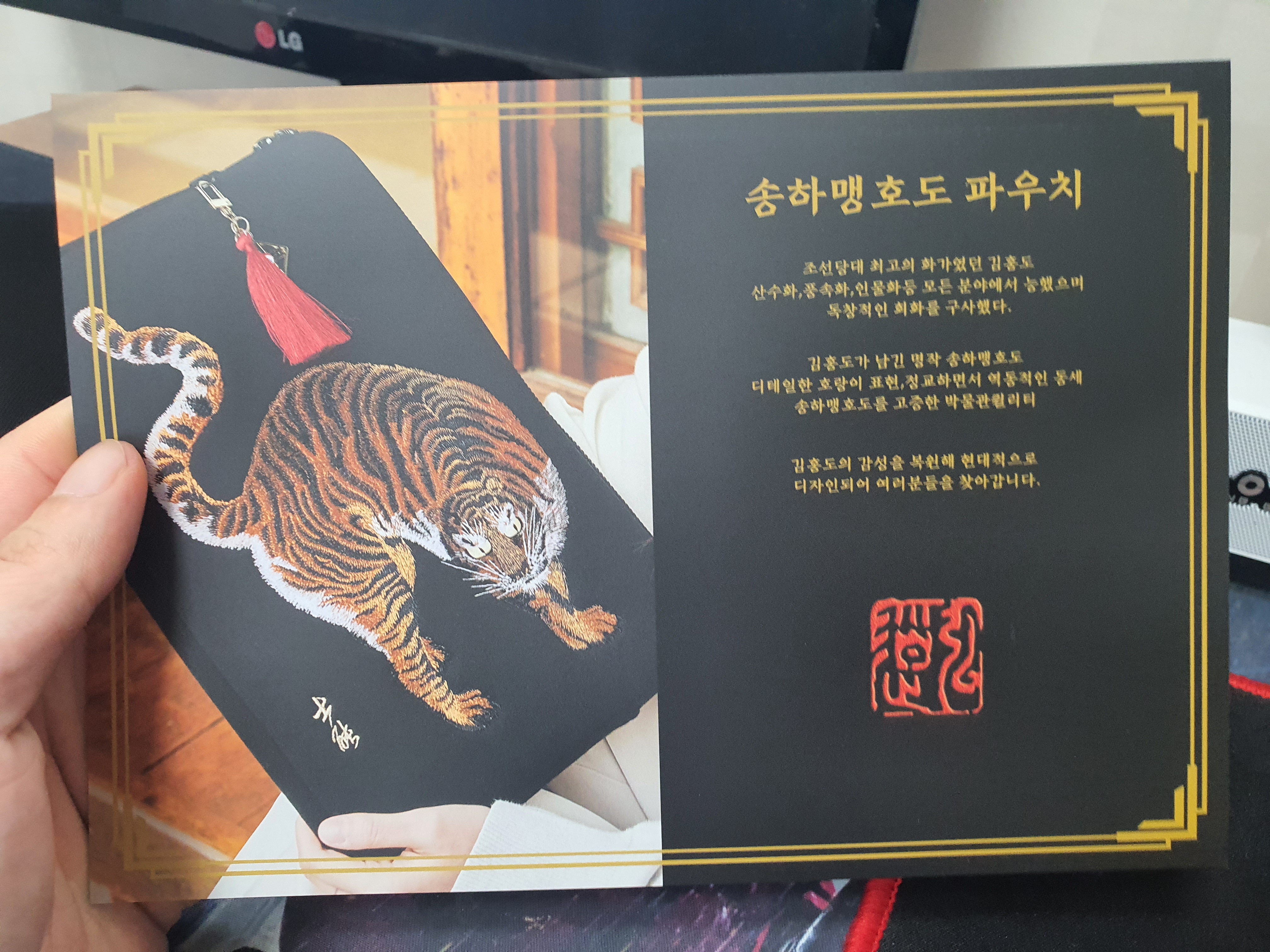 지금까지 간단하게 어바웃엠브로에서 제작한 송하맹호도 파우치 리뷰를 진행했는데요.