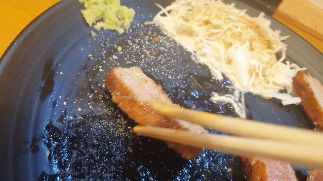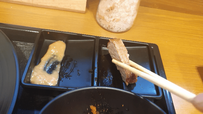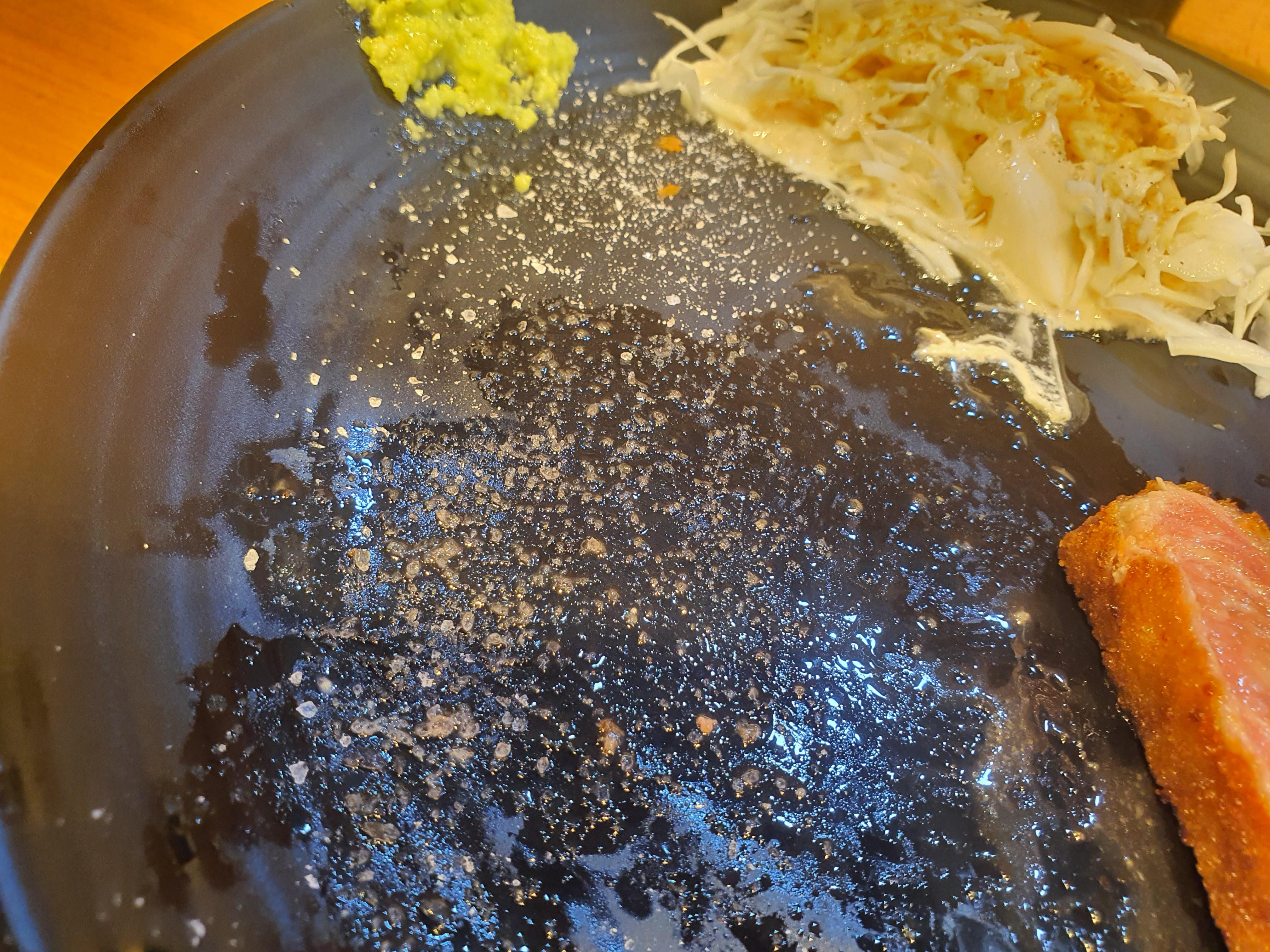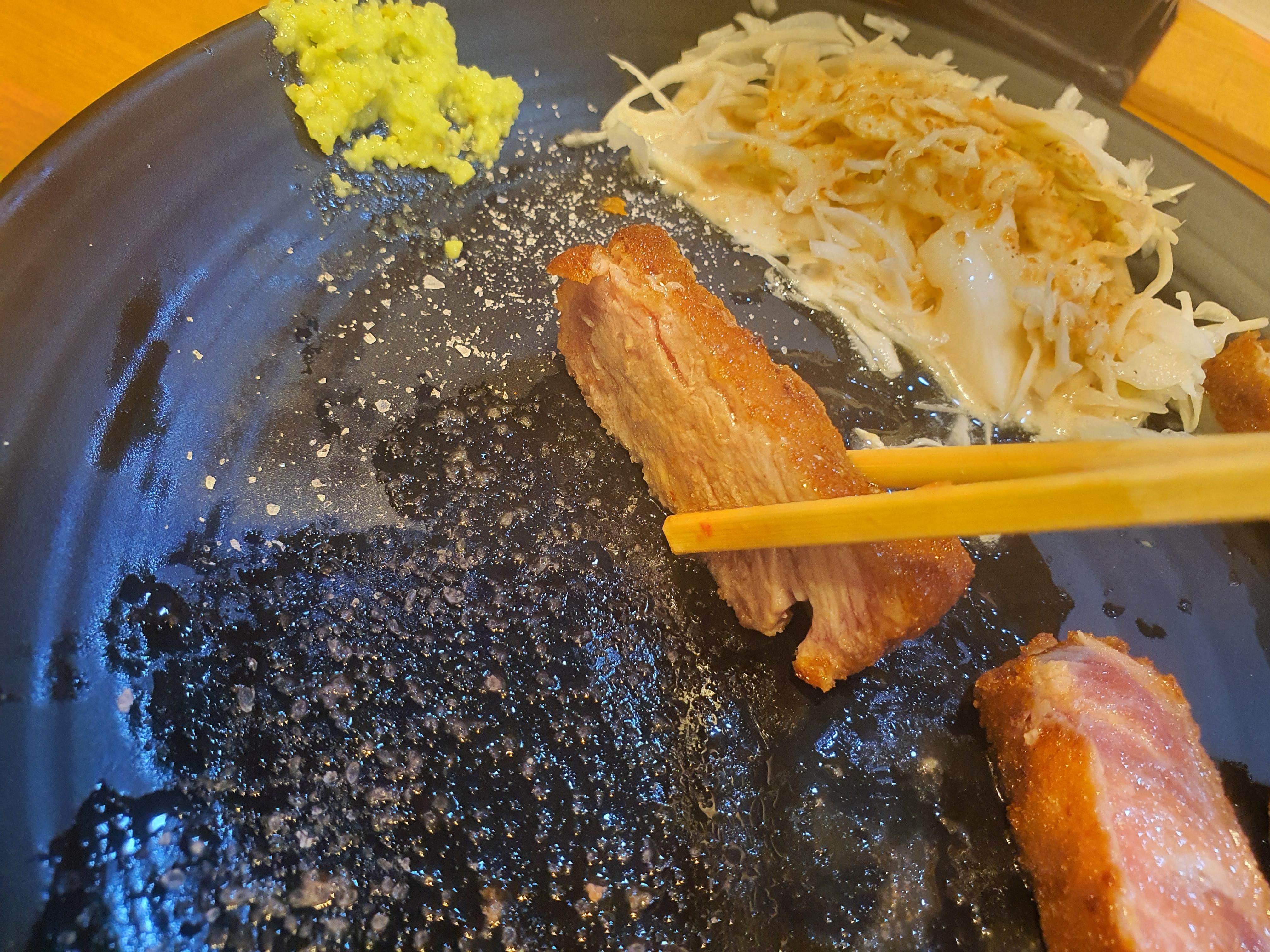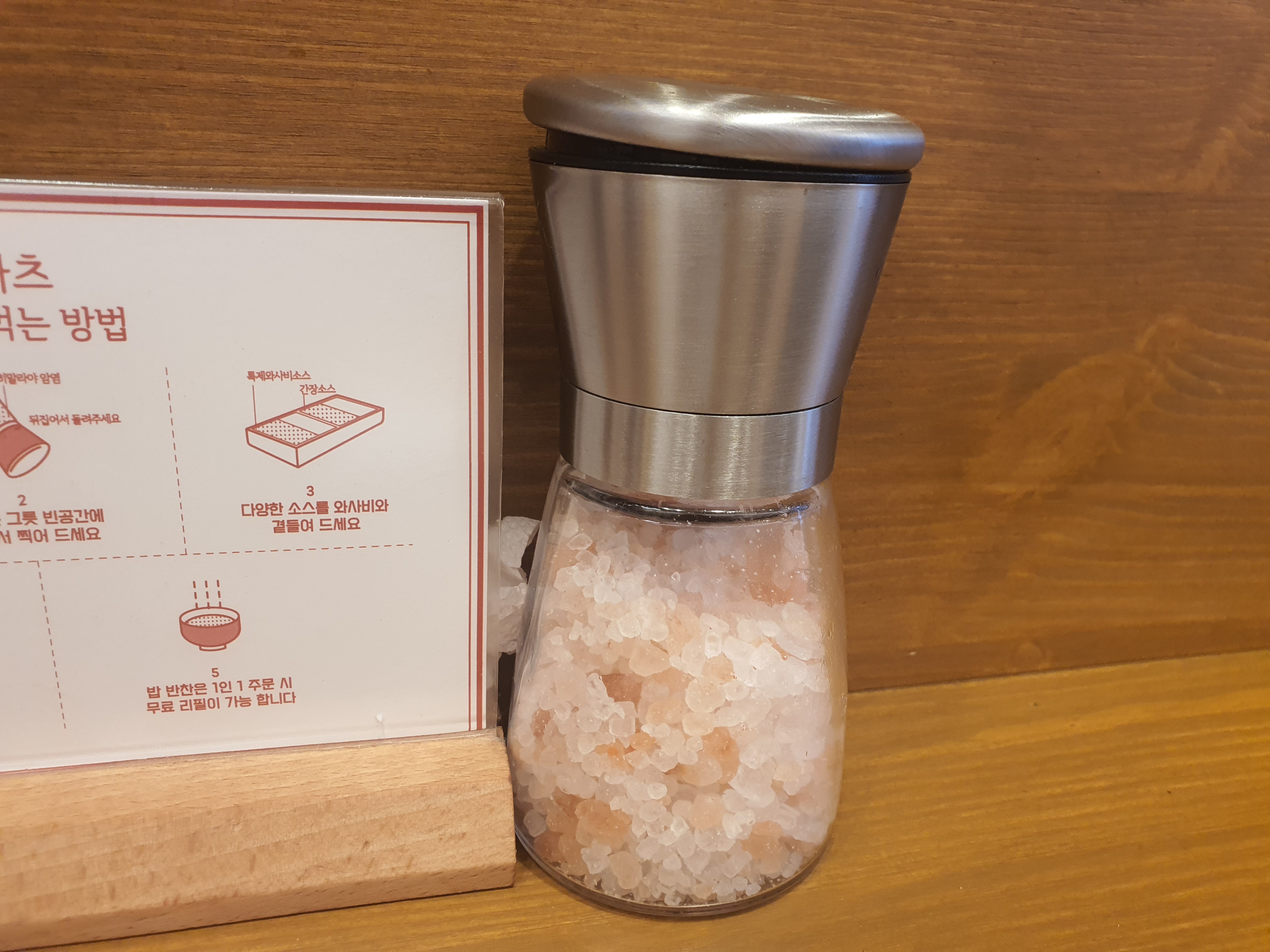 규카츠를 찍어먹을 굵은 소금도 있습니다.