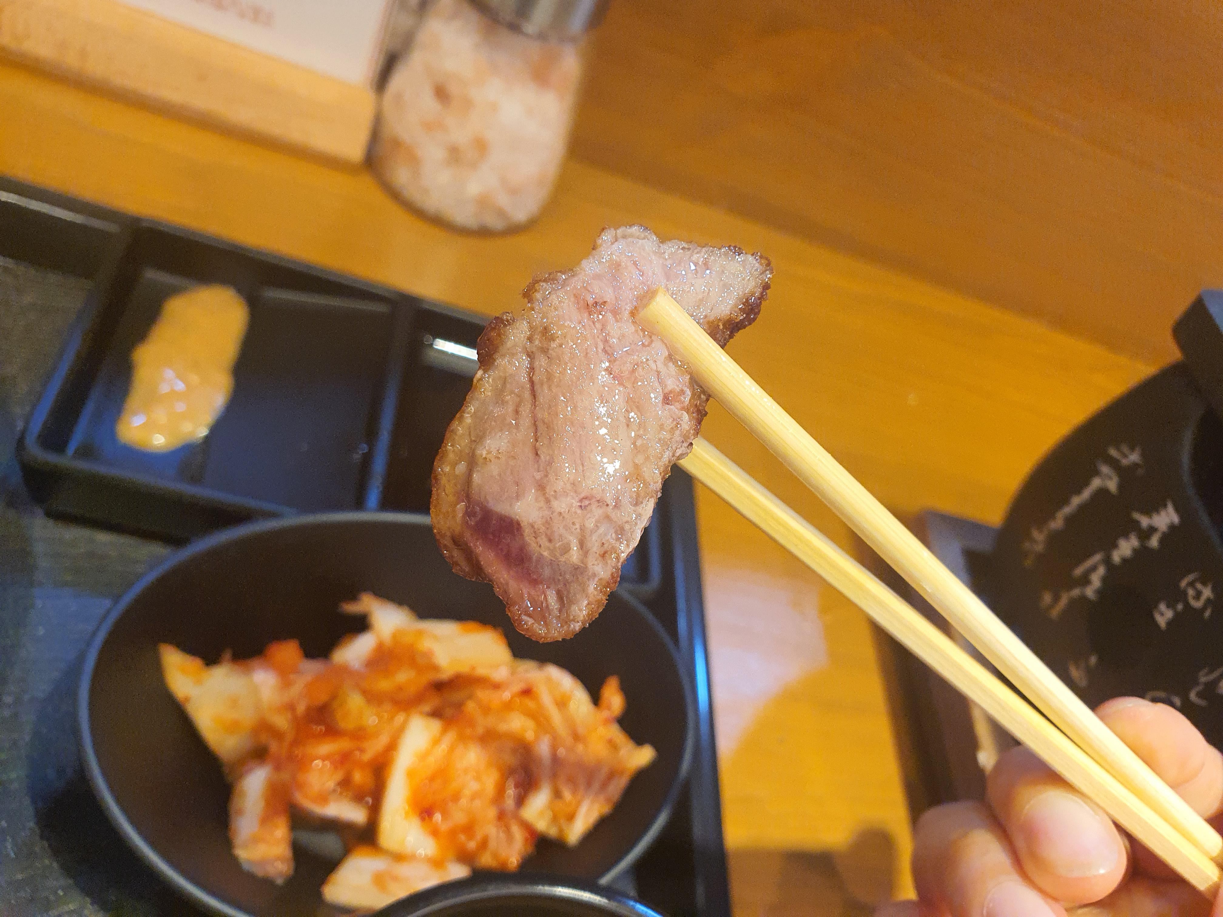 본인이 원하는 스타일에 고기가 구워졌으면 젓가락으로 집어서 낼름 먹으시면 됩니다.