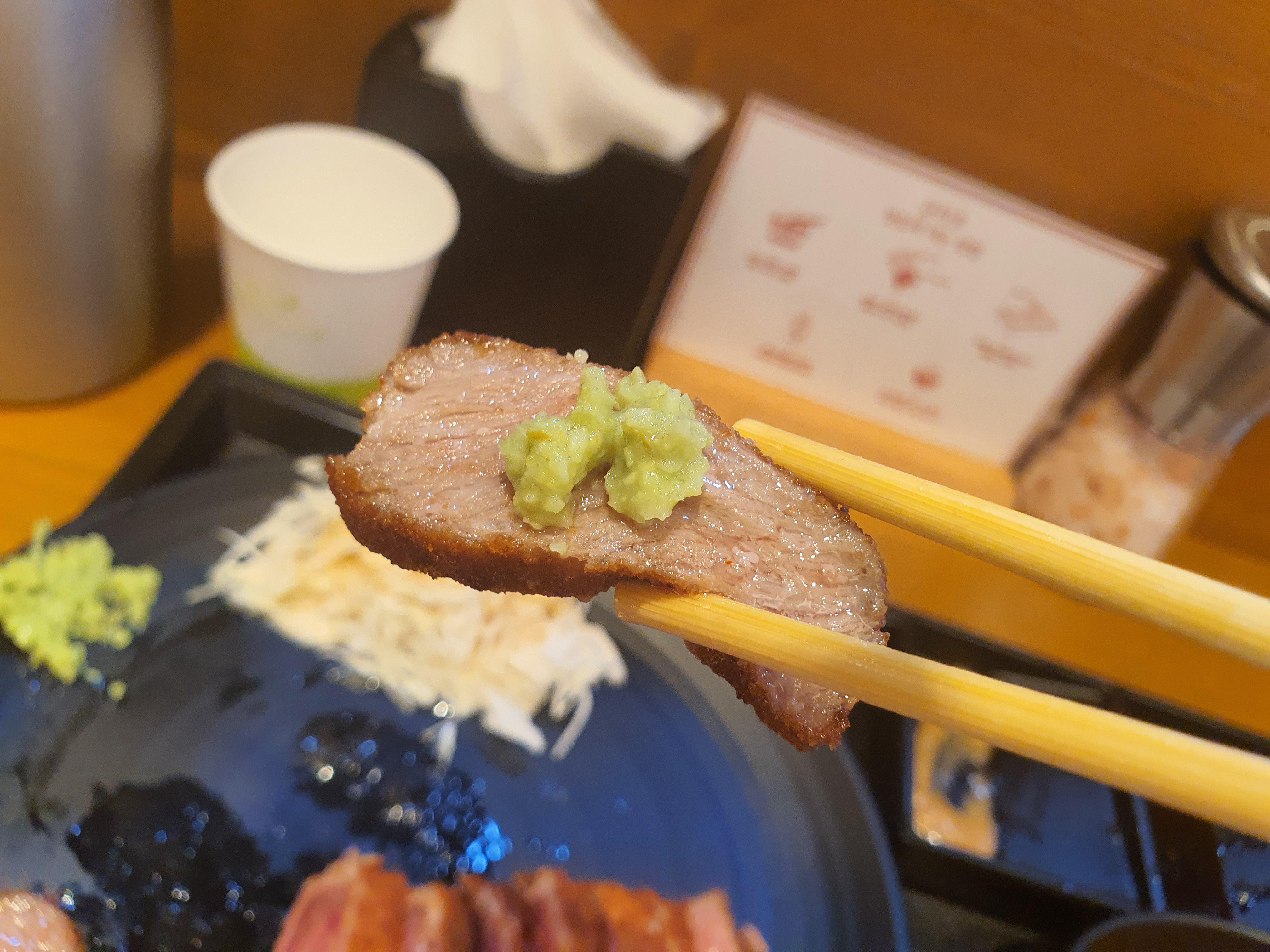 와사비를 듬뿍 얹어 코끝이 찡하게 먹기