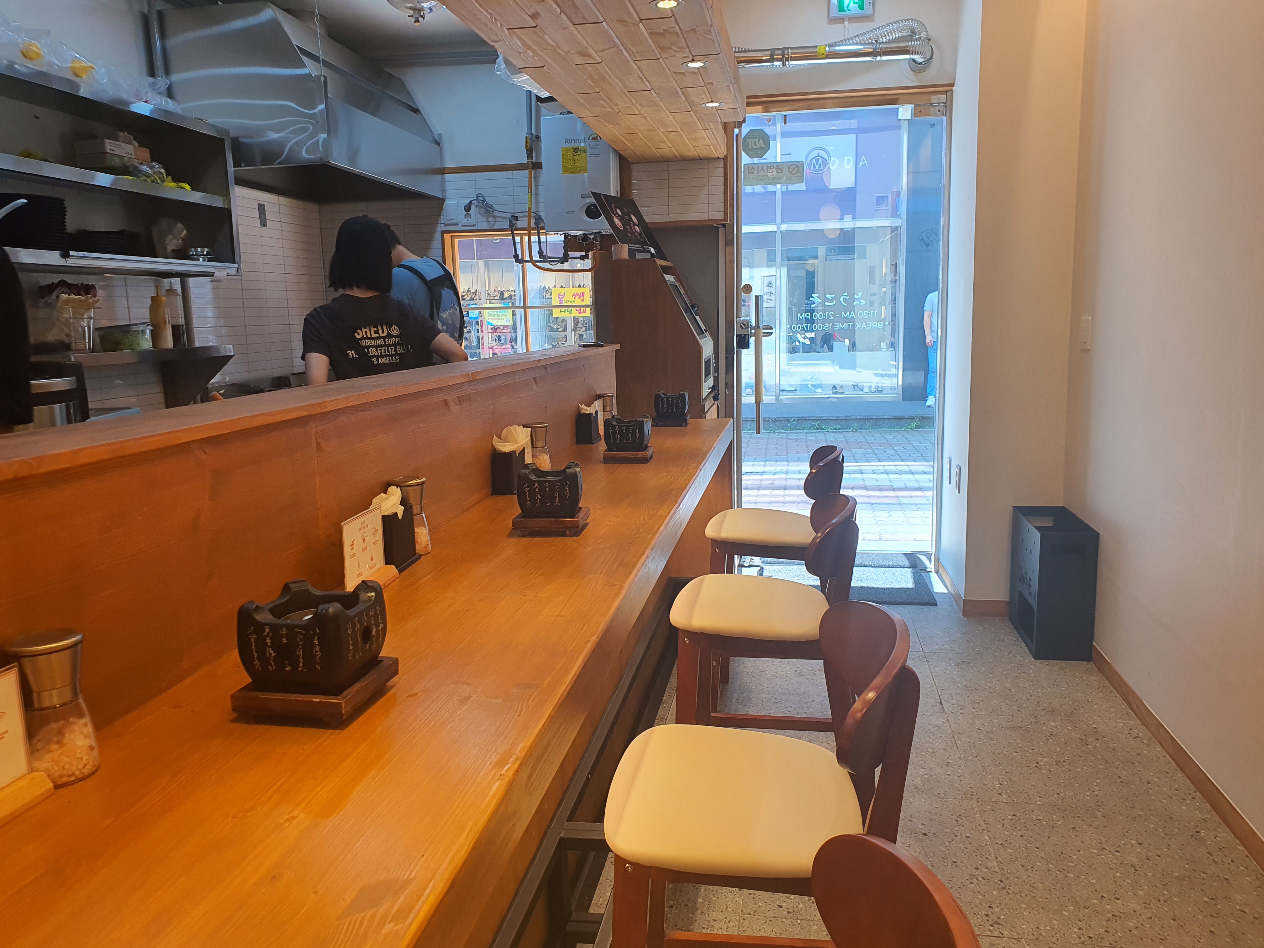 가게 내부는 그렇게 크지는 않지만 여러명이서 2명이상 먹을수 있는 테이블이 4개정도 비치되어있고 혼자서 앉아 먹을수 있는 테이블도 있네요.