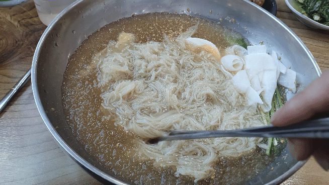 그래도 은파꼬기냉면 오면 이 더운날씨에 비빔냉면보다는 물냉면이 국룰이죠!