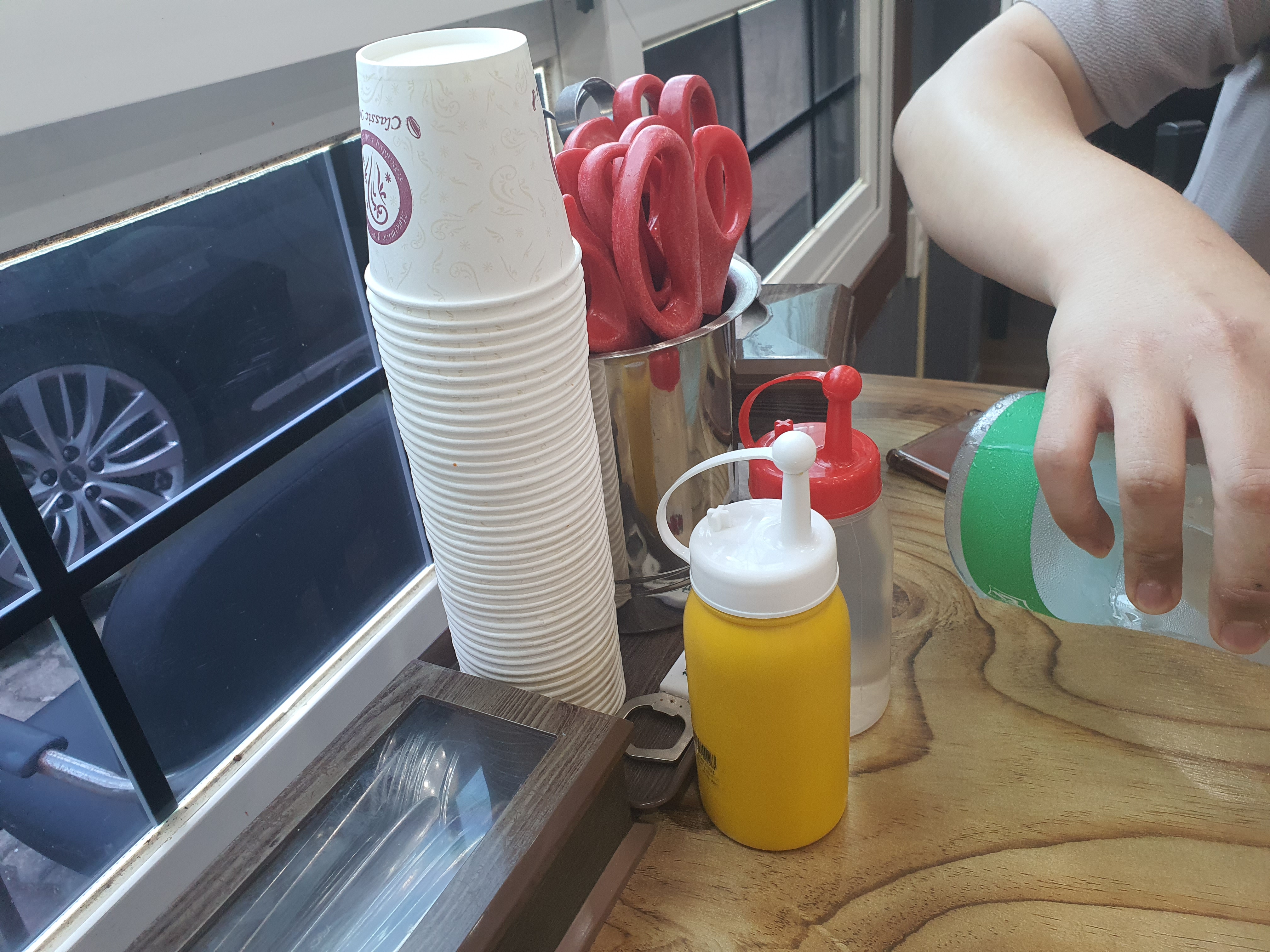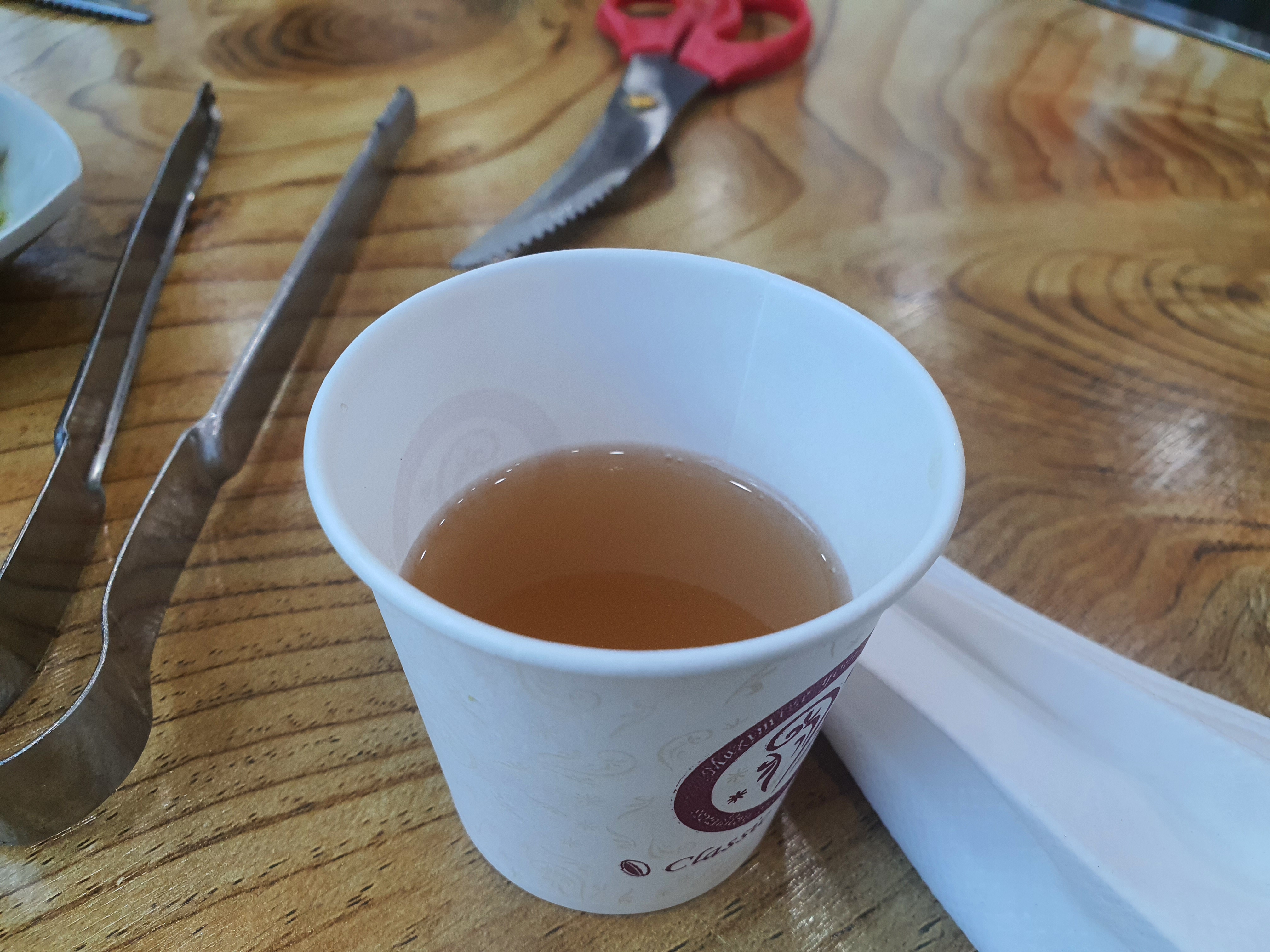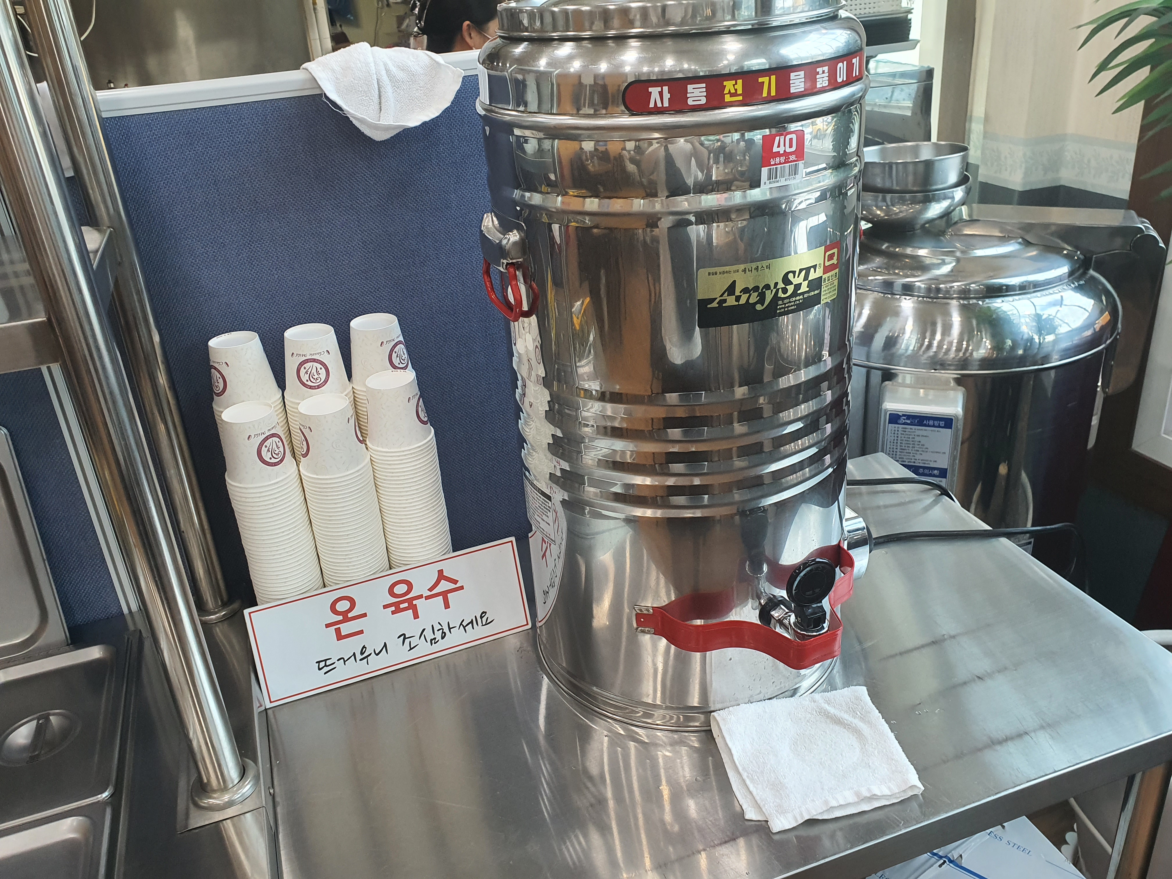 따뜻하고 맛있는 육수를 셀프로 종이컵에 받아서 먹으면 되구요!