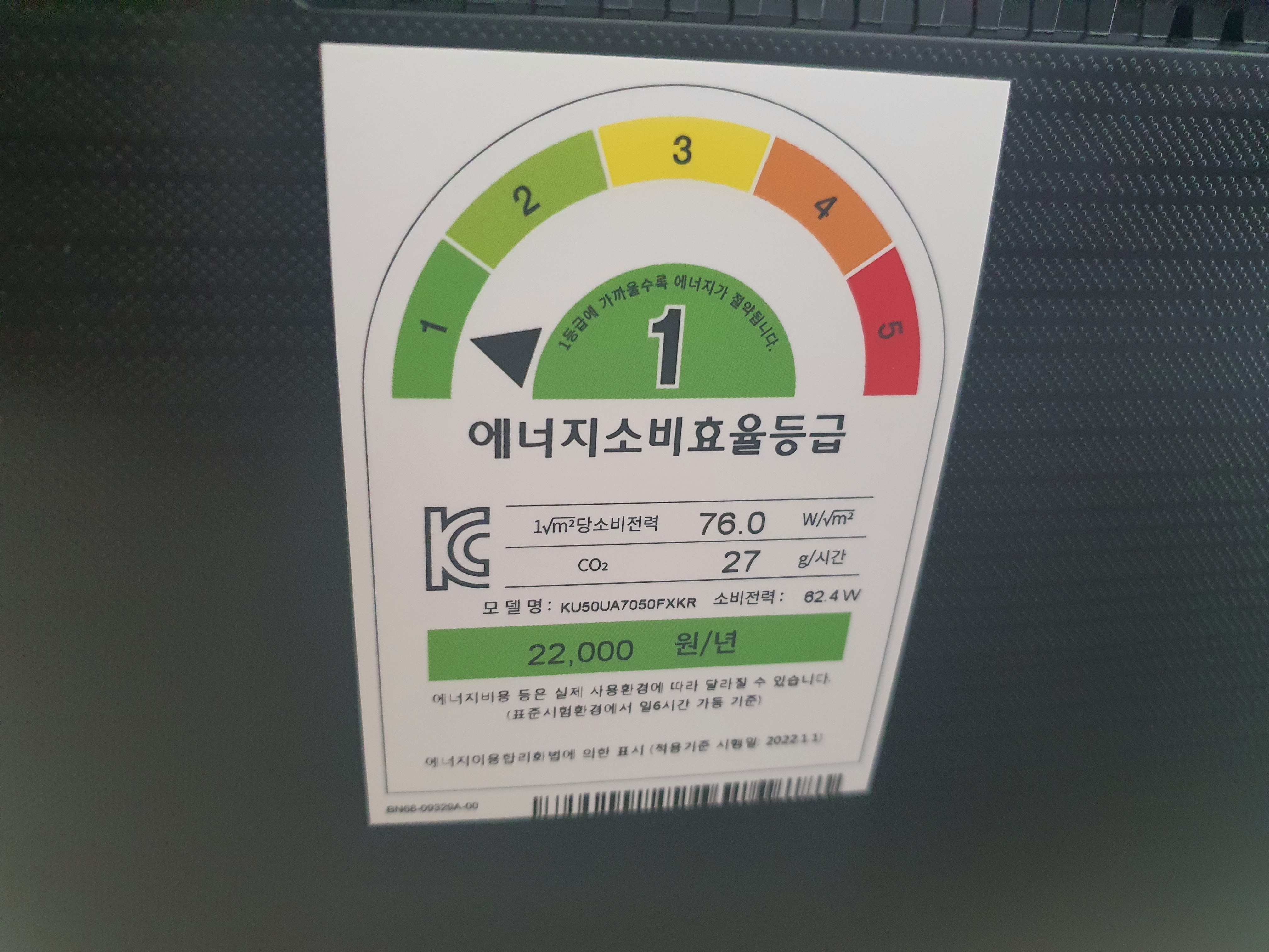 TV를 제외한 가전들은 1등급이 좋은데 TV는 1등급이 좋은게 아니라고 하더라구요.