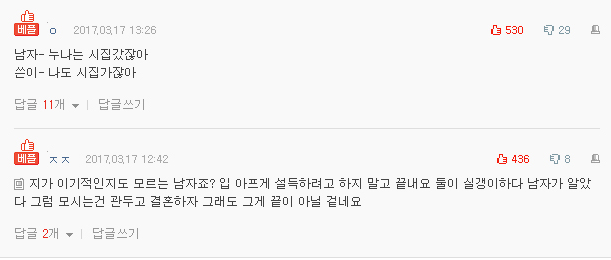 결혼결정한거 아니야 자기도 마찬가지잖아