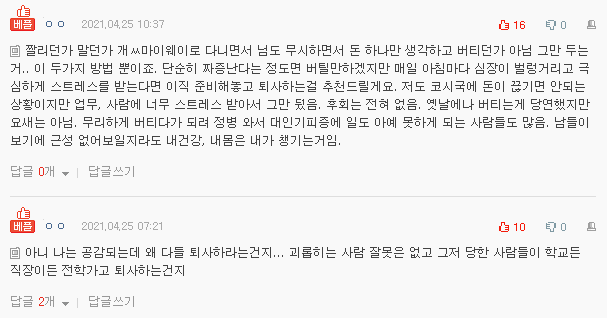 | 네이트판 레전드 - 직장인은 무엇을 위해 살아가는지 (0) | 2021.04.25 |