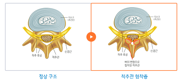 척추관협착증이란? 척추에는 뇌와 팔다리를 연결하는 척추관이라는 통로가 있는데