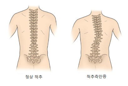 정상적인 사람의 척추는 위에 그림같이 일직선으로 곧게 뻗어있지만