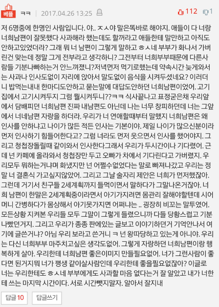 근데 남편이 그걸 모임에서 술한잔 마시는데