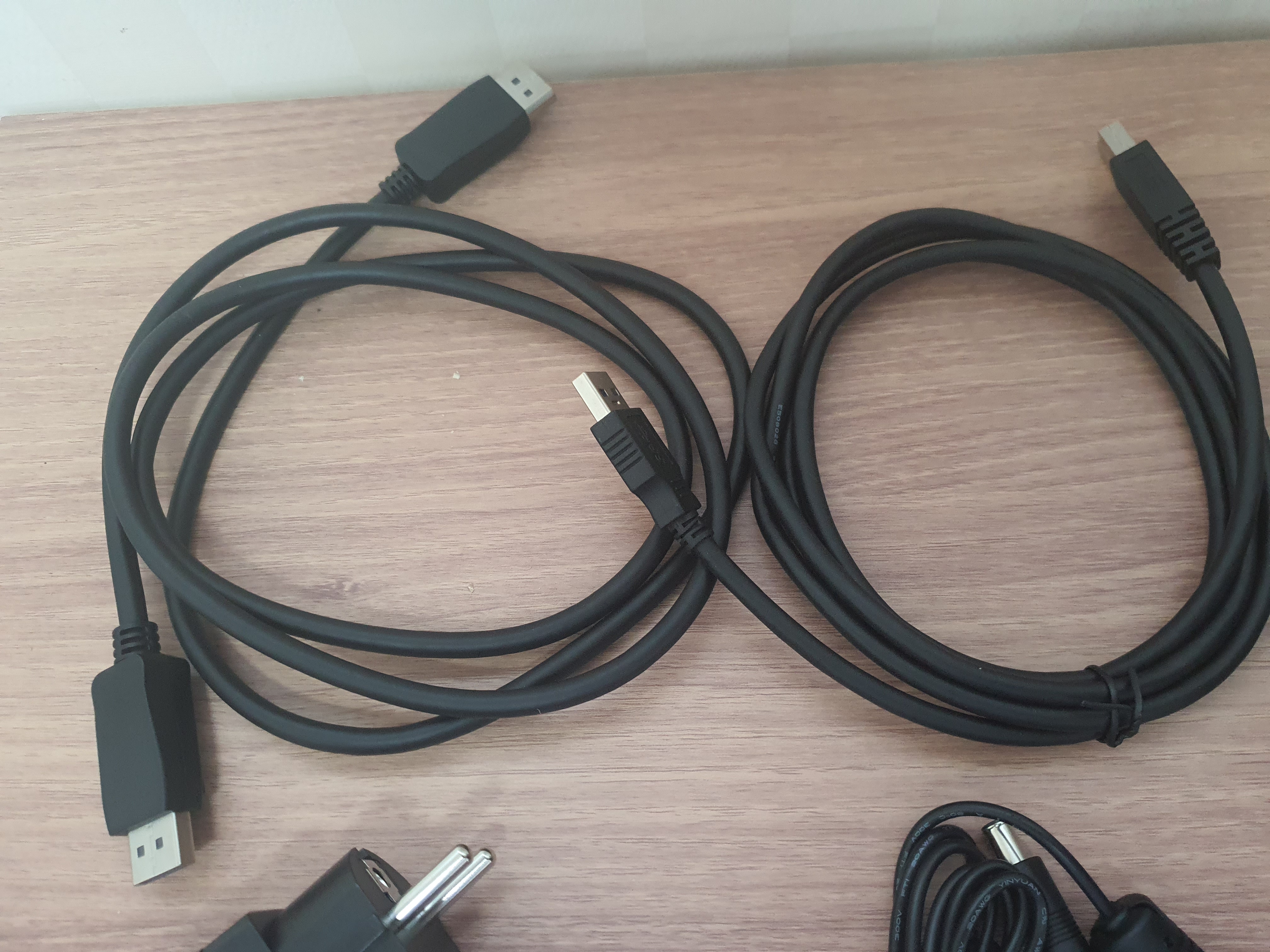 전원코드 / DP케이블 / HDMI케이블(사진에없음) / SS케이블 / 스탠드