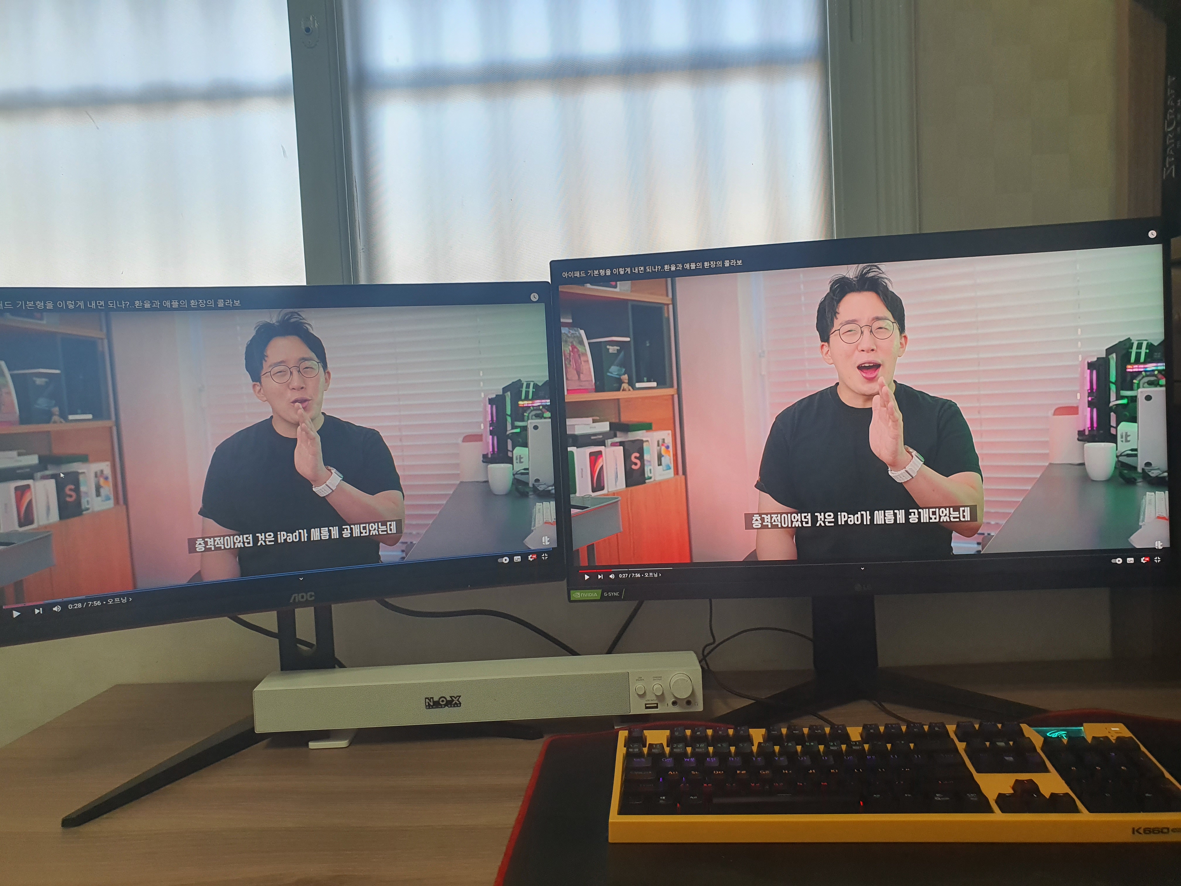 동시에 유튜브를 틀어 화질 비교를 해봤는데요.