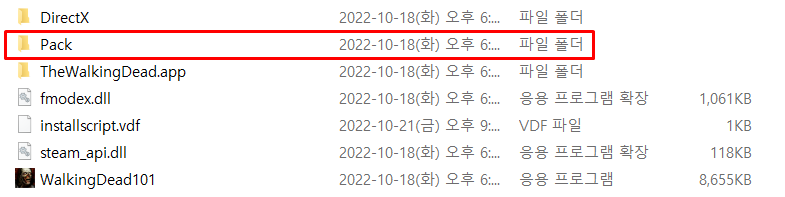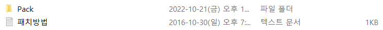 한글패치 폴더안에 있는 Pack 폴더를 여기에 붙여넣기해서 덮어쓰기 해주면 됩니다.