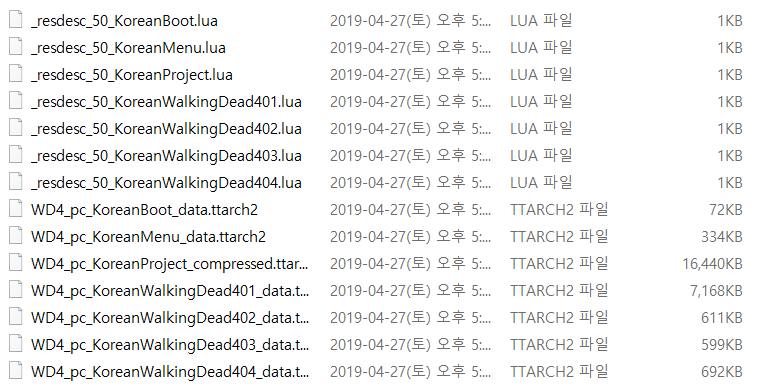 위에 보이는파일들이 한글패치 파일들입니다.