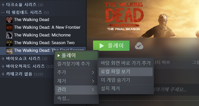 더 워킹데드 시즌1-400days-시즌2 한글패치 적용방법