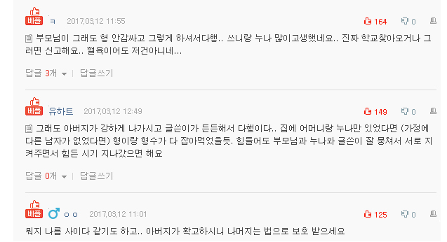 부모님 난리 나시고 누나랑 나는 한숨쉼
