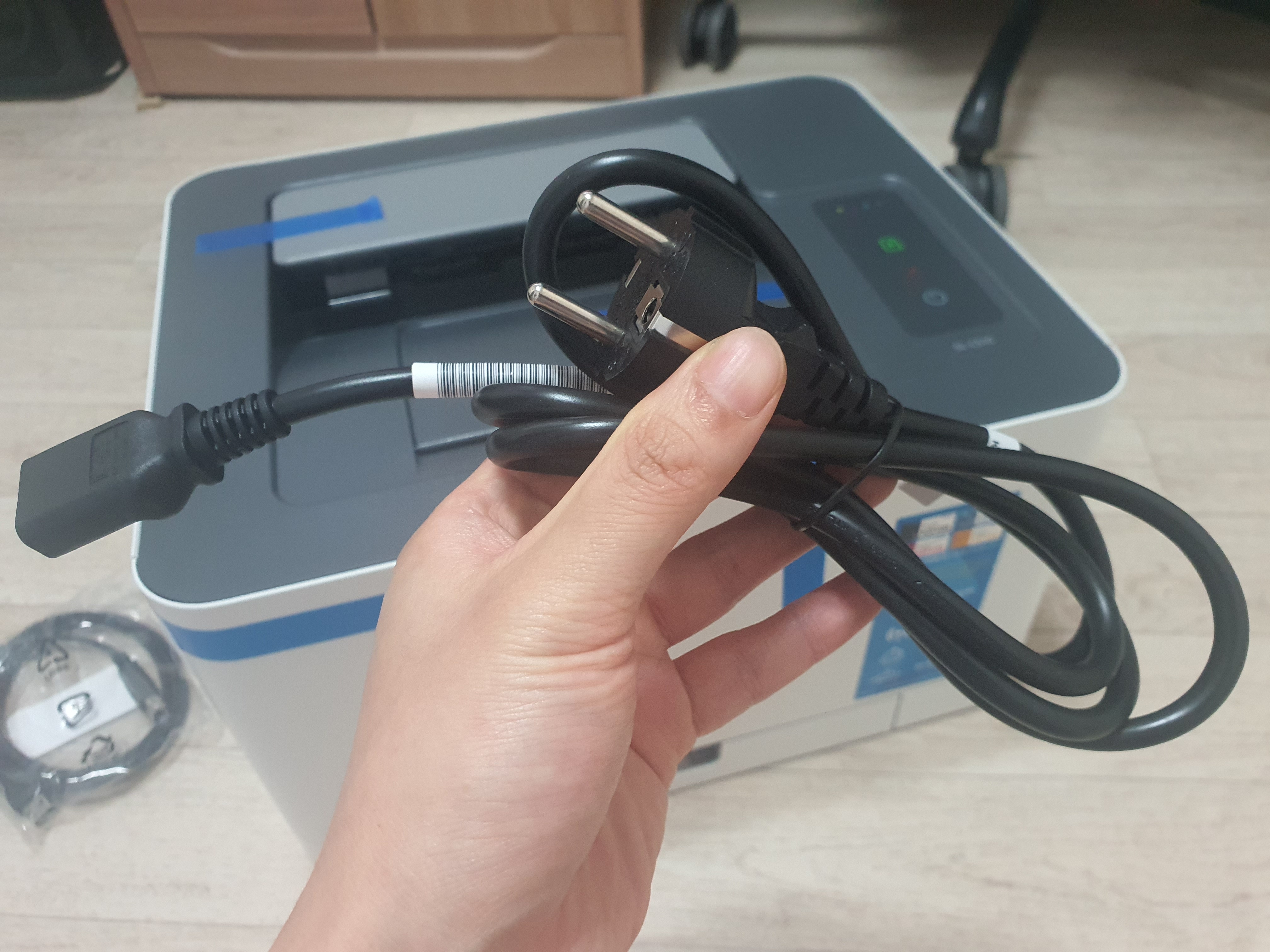 전원케이블과 USB케이블을 레이저 프린터 본체에 연결시킨 뒤에 컴퓨터에도 연결을 해주시고 전원을 켜주고 난뒤