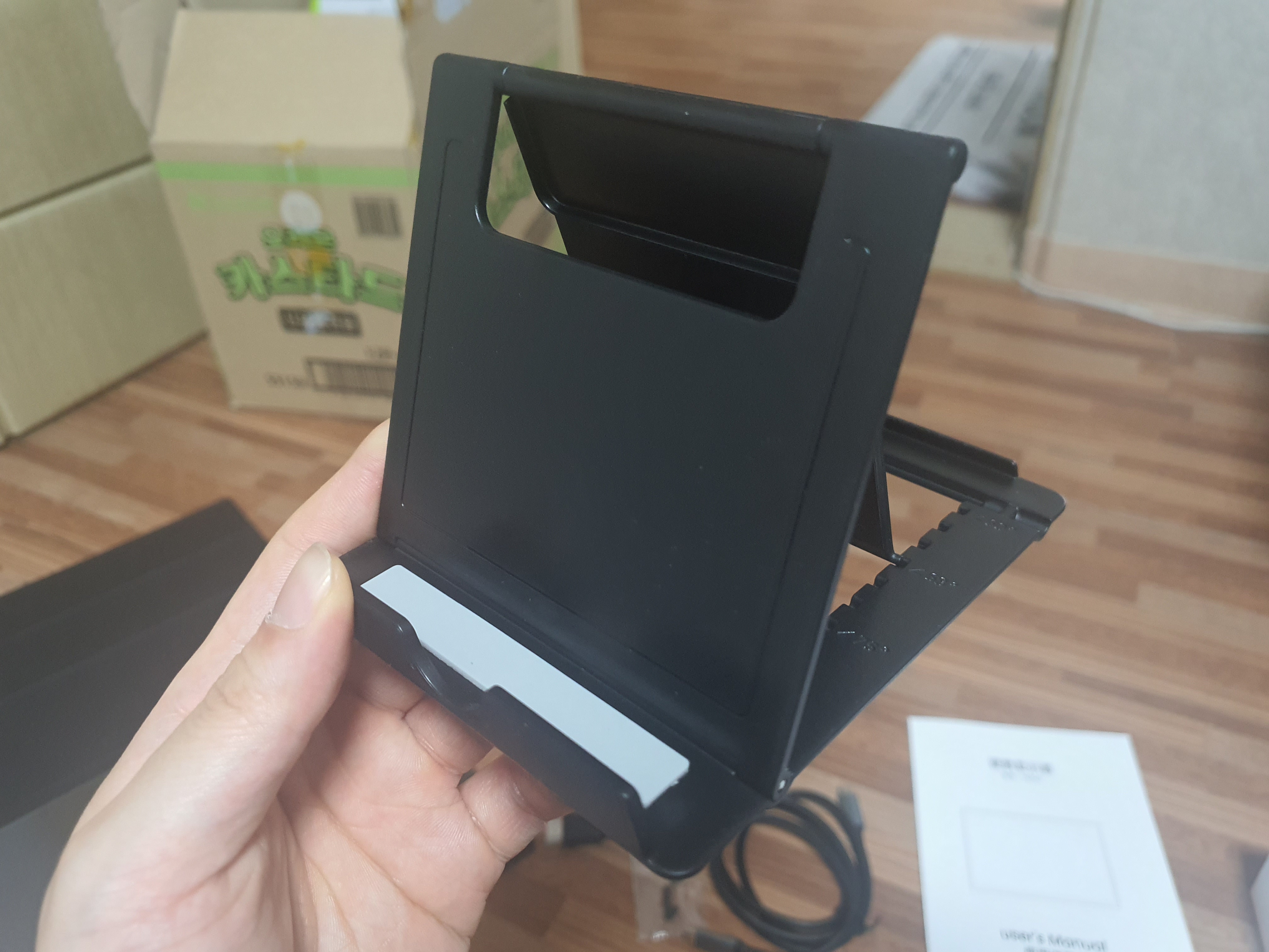 스탠드가 좋은제품은 아닌데 의외로 포터블 모니터를 받쳐주기에는 전혀 무리가 없을정도로 짱짱합니다.