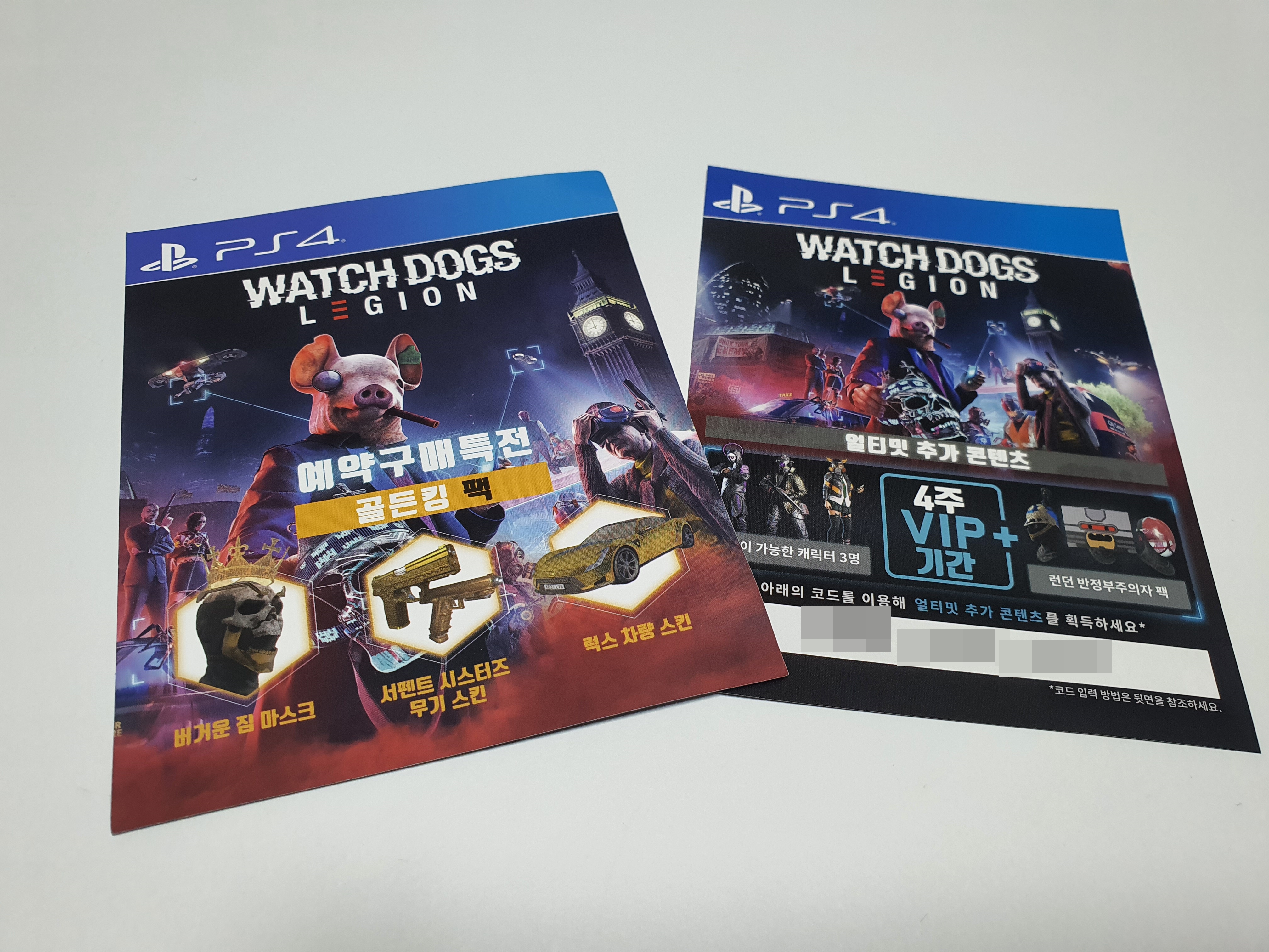 새로운 스토리 확장팩 획득 + 특별캐릭터 4명 + 와치독스1 컴플리트 에디션 + 플레이 가능한 캐릭터 3명 + 4주 VIP기간 + 런던 반정부주의자 팩