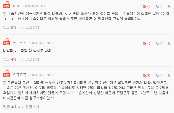 일 다부려먹고 수습기간까지만 쓰고 버리는거지...