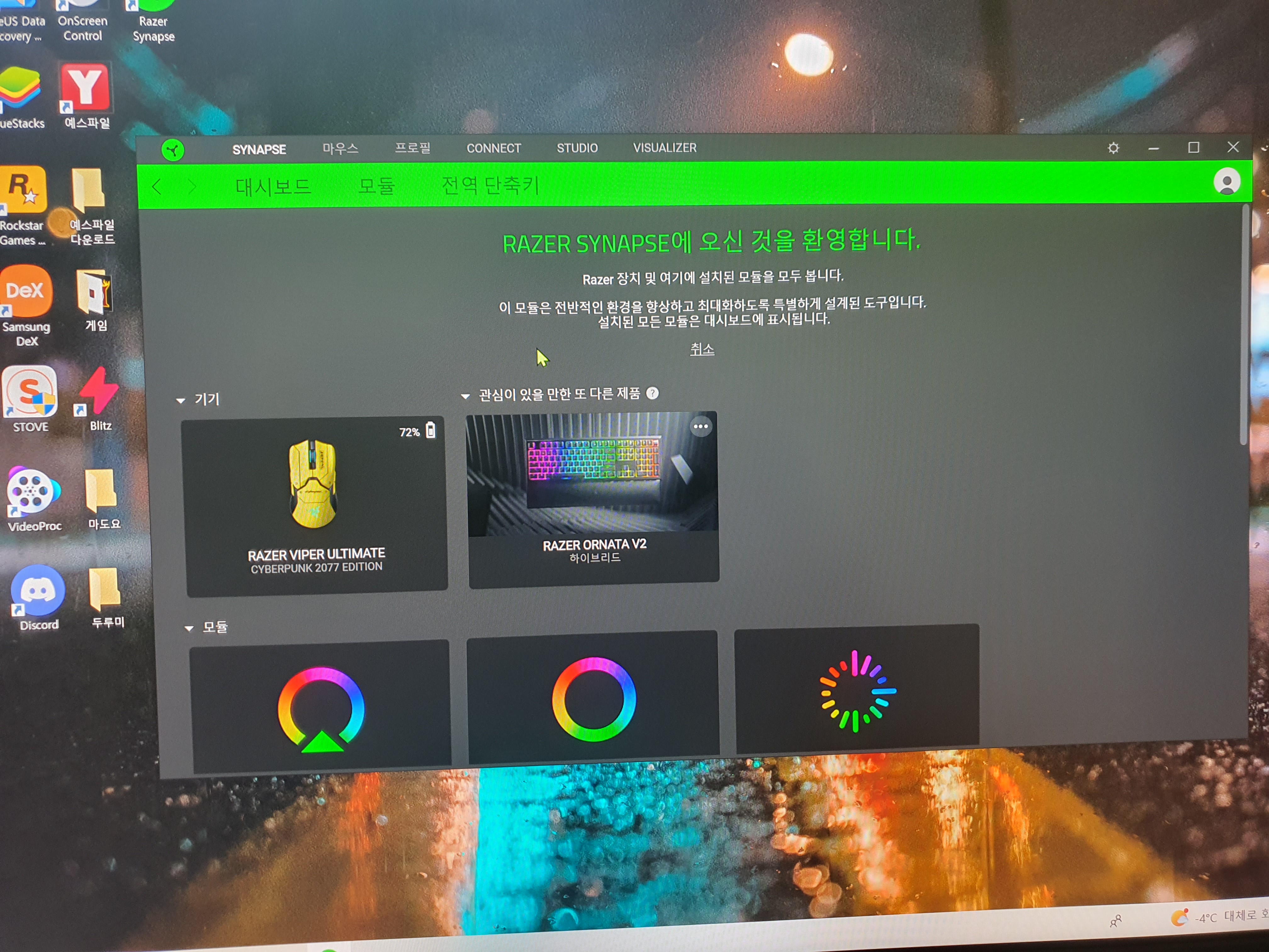 레이저 시냅스 프로그램을 들어가면 무선 마우스 충전상태를 실시간으로 확인할수가 있습니다.