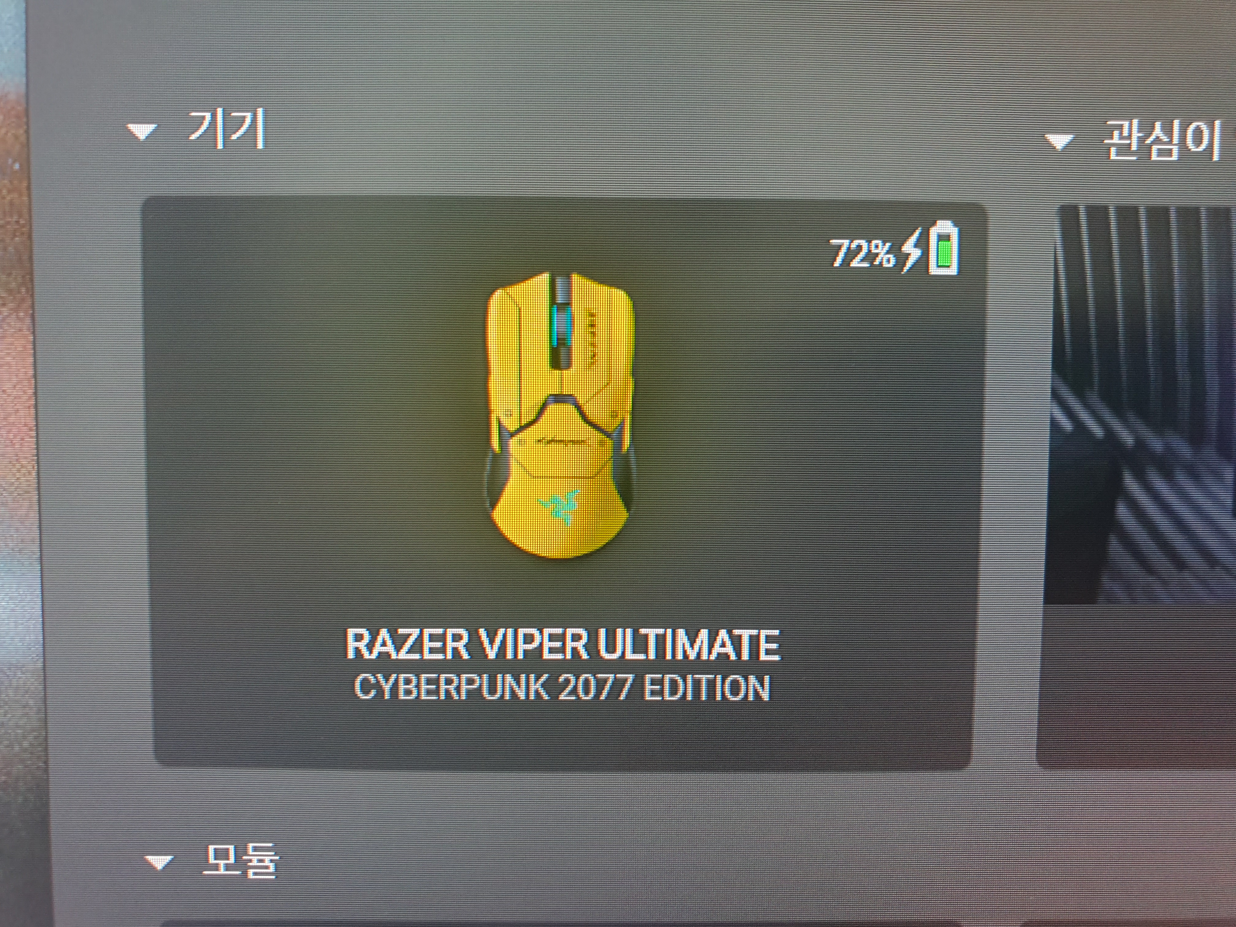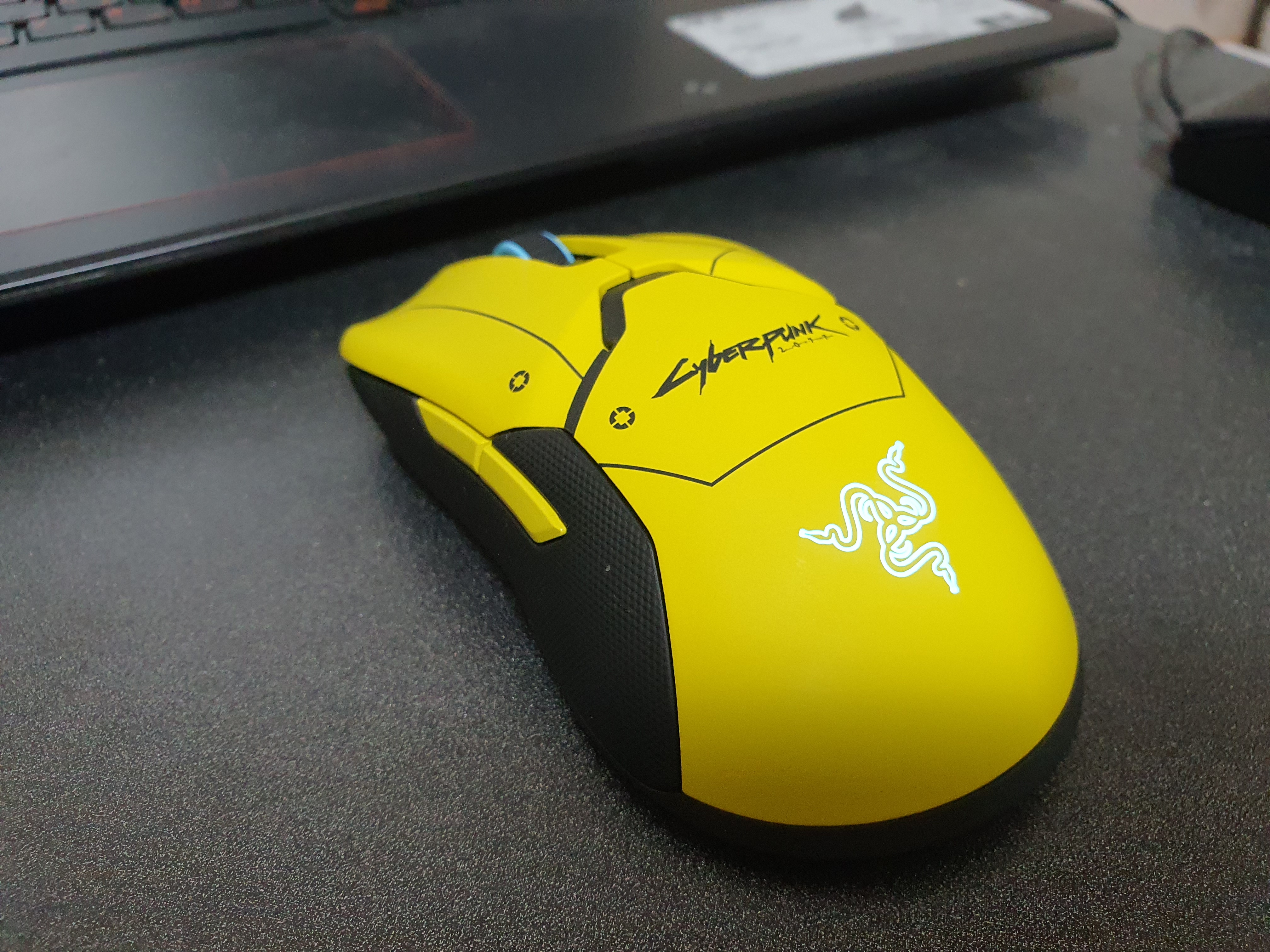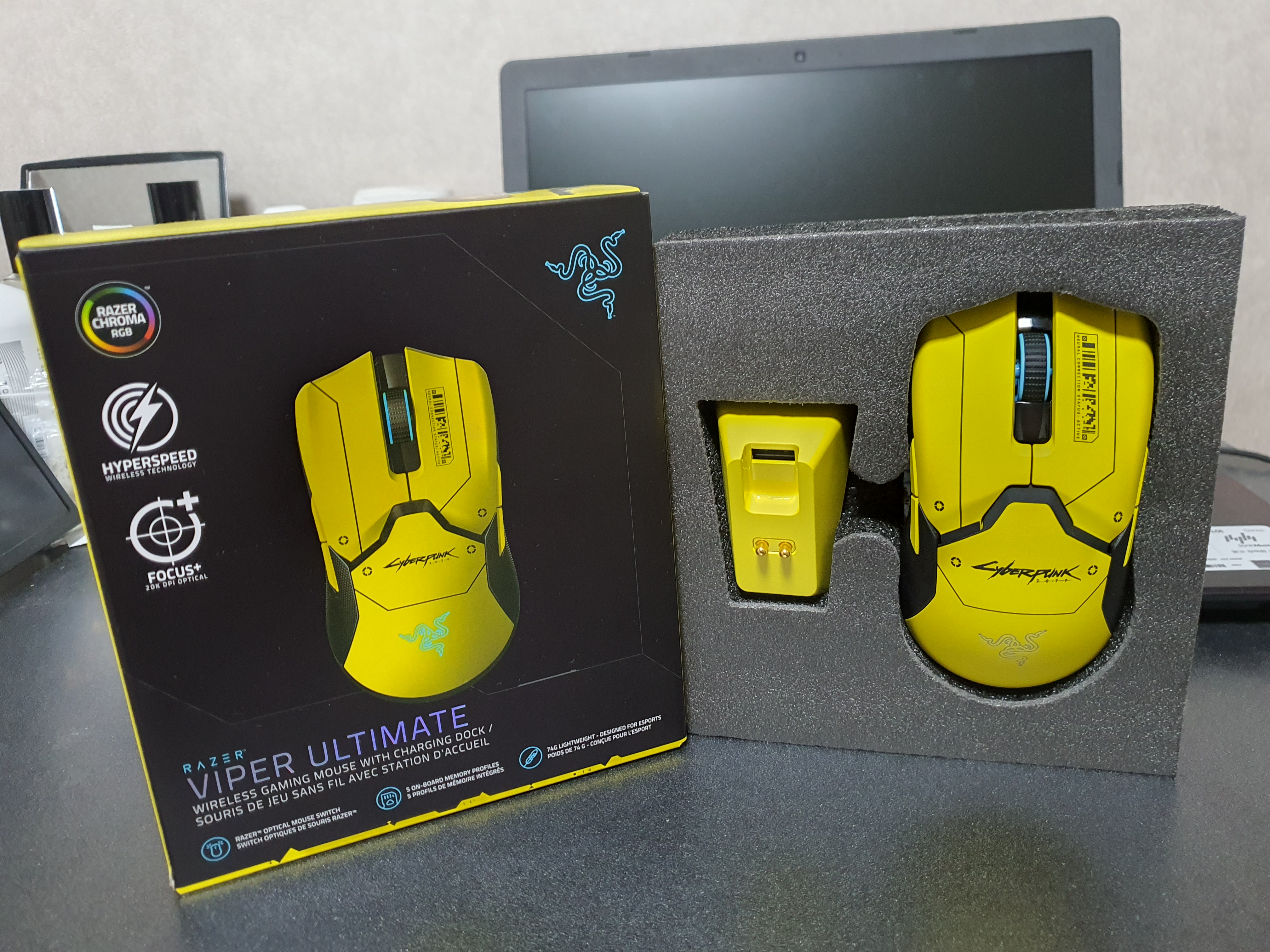 게이밍 감성을 잘담아내기로 유명한 회사 레이저(RAZER)가 출시한 바이퍼 얼티메이트 사이버펑크 2077에디션 무선 게이밍 마우스를 보여드리겠습니다.