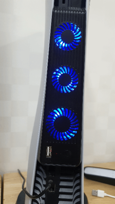 그런데 이 제품은 플스5 전원이 켜지면 자동으로 쿨러가 작동되고 플스5 전원이 꺼지면 쿨러도 자동으로 OFF된다는점이 저는 좋더라구요.