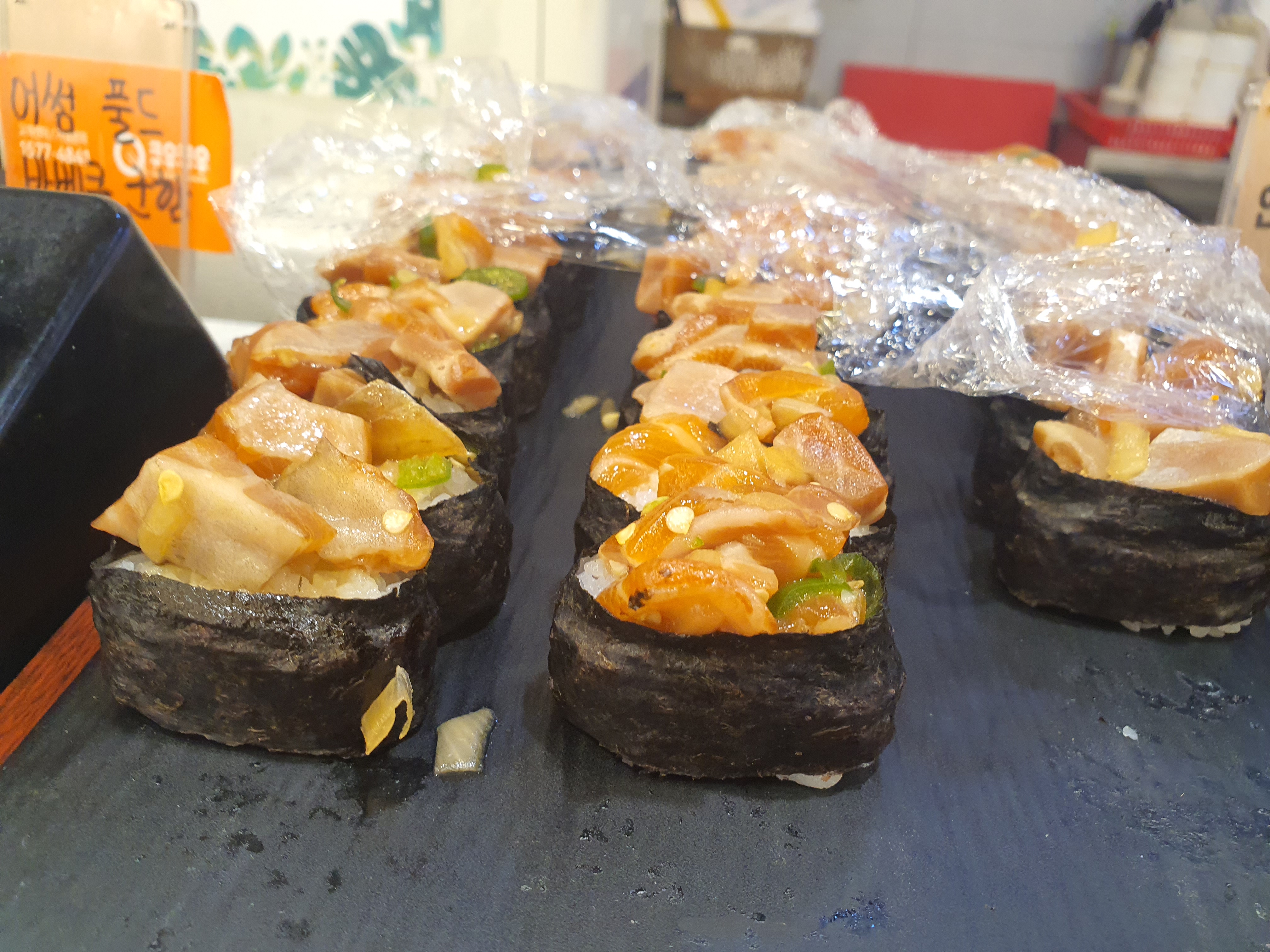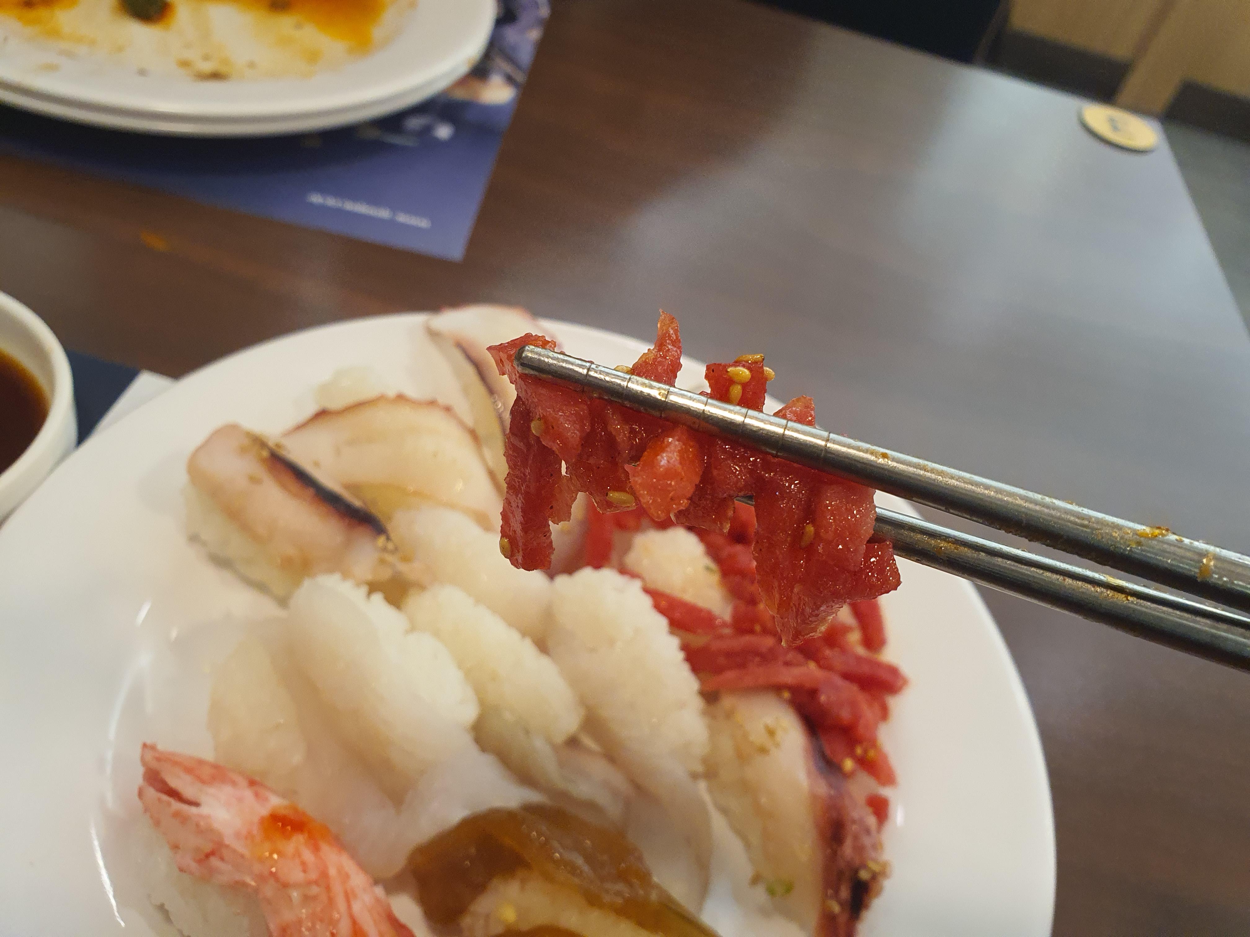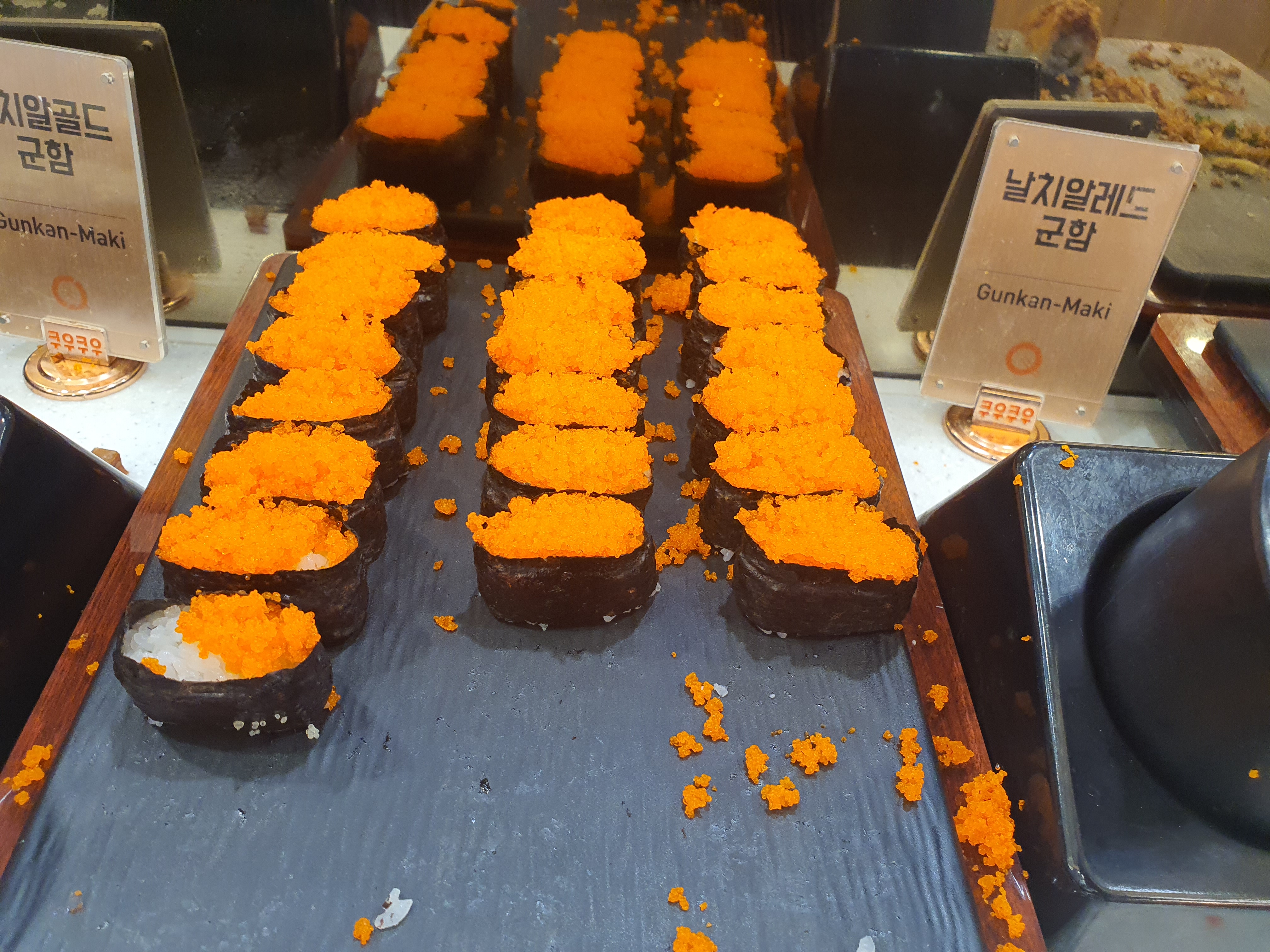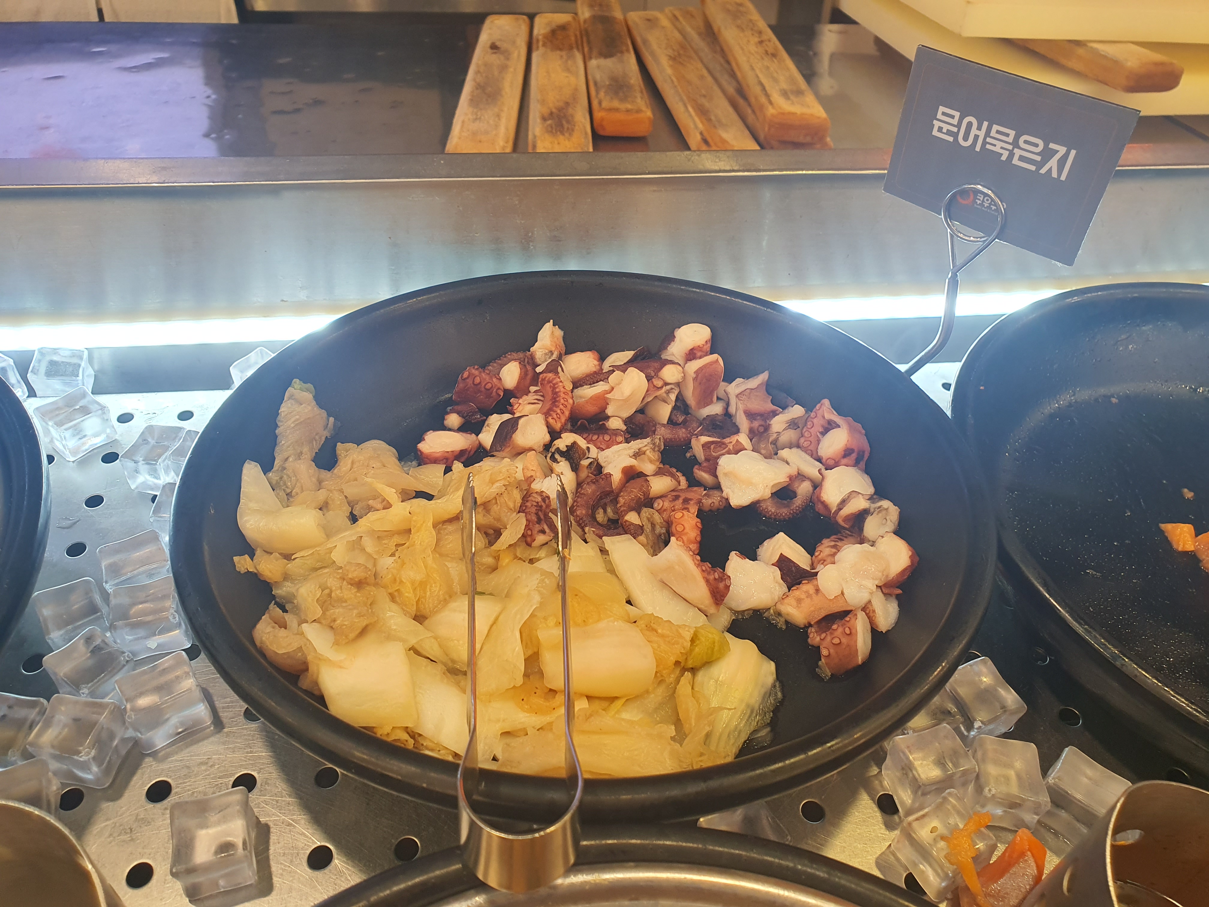 그 옆에 참치 간장새우 문어묵은지 등등 여러 해산물들이 있는데 크게 인기는 없어보였습니다.
