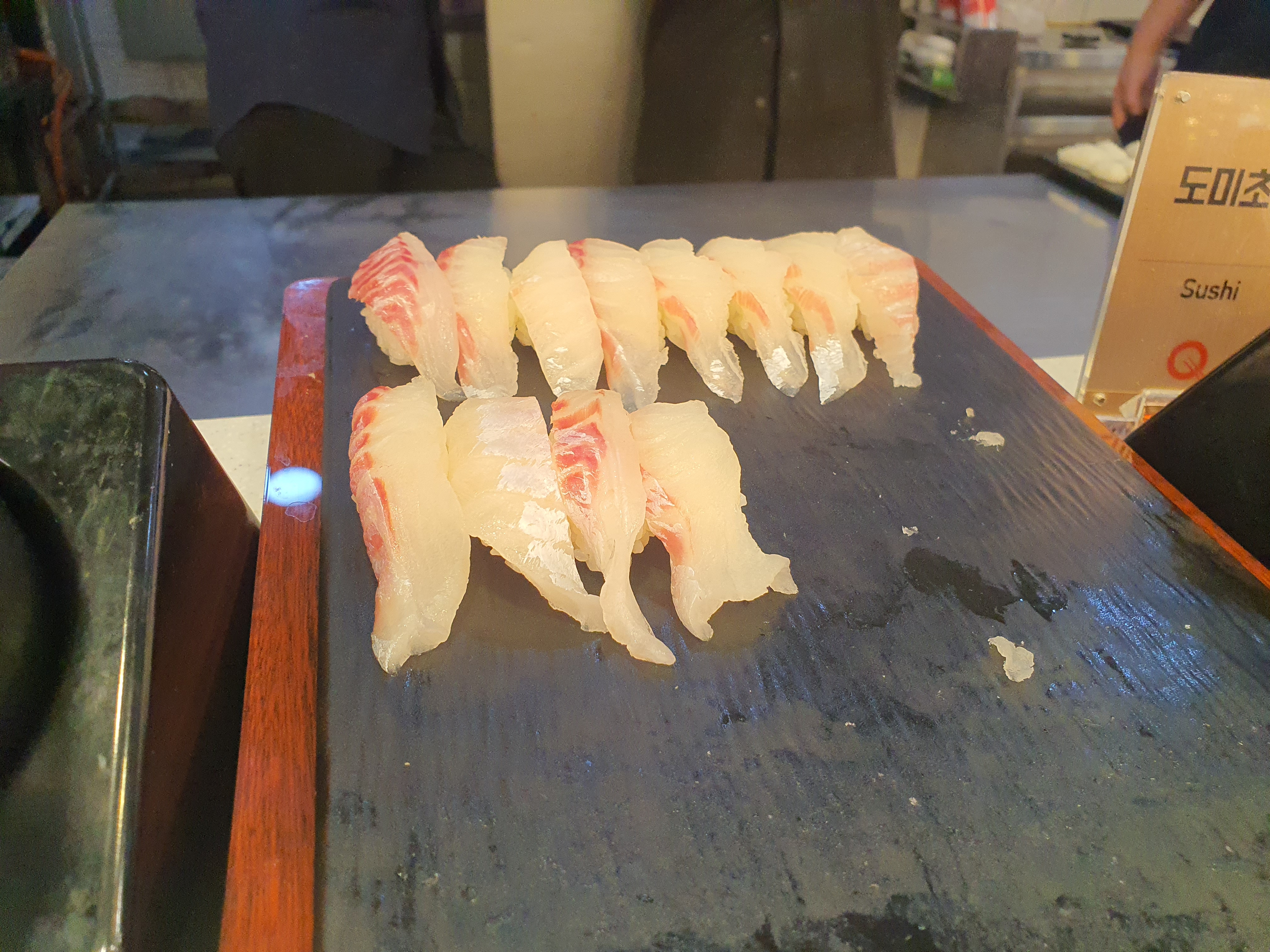 광어랑 비슷한 느낌의 생선초밥인데 저는 그래도 광어가 좋더라구요.