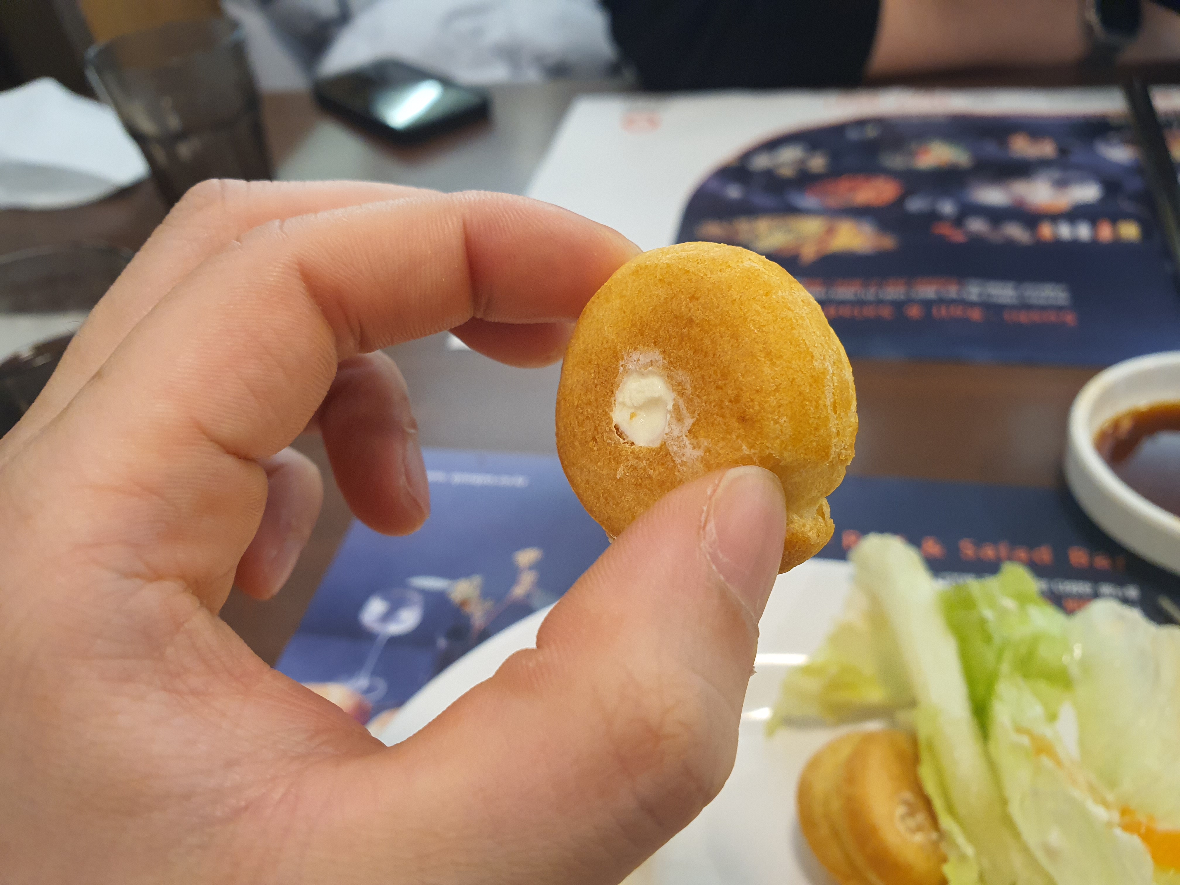 마지막으로 입가심 할겸 간단한 과일과 샐러드 그리고 마지막으로 슈크림? 홈런볼 먹는것을 끝으로 쿠우쿠우에서의 식사를 마무리했습니다.