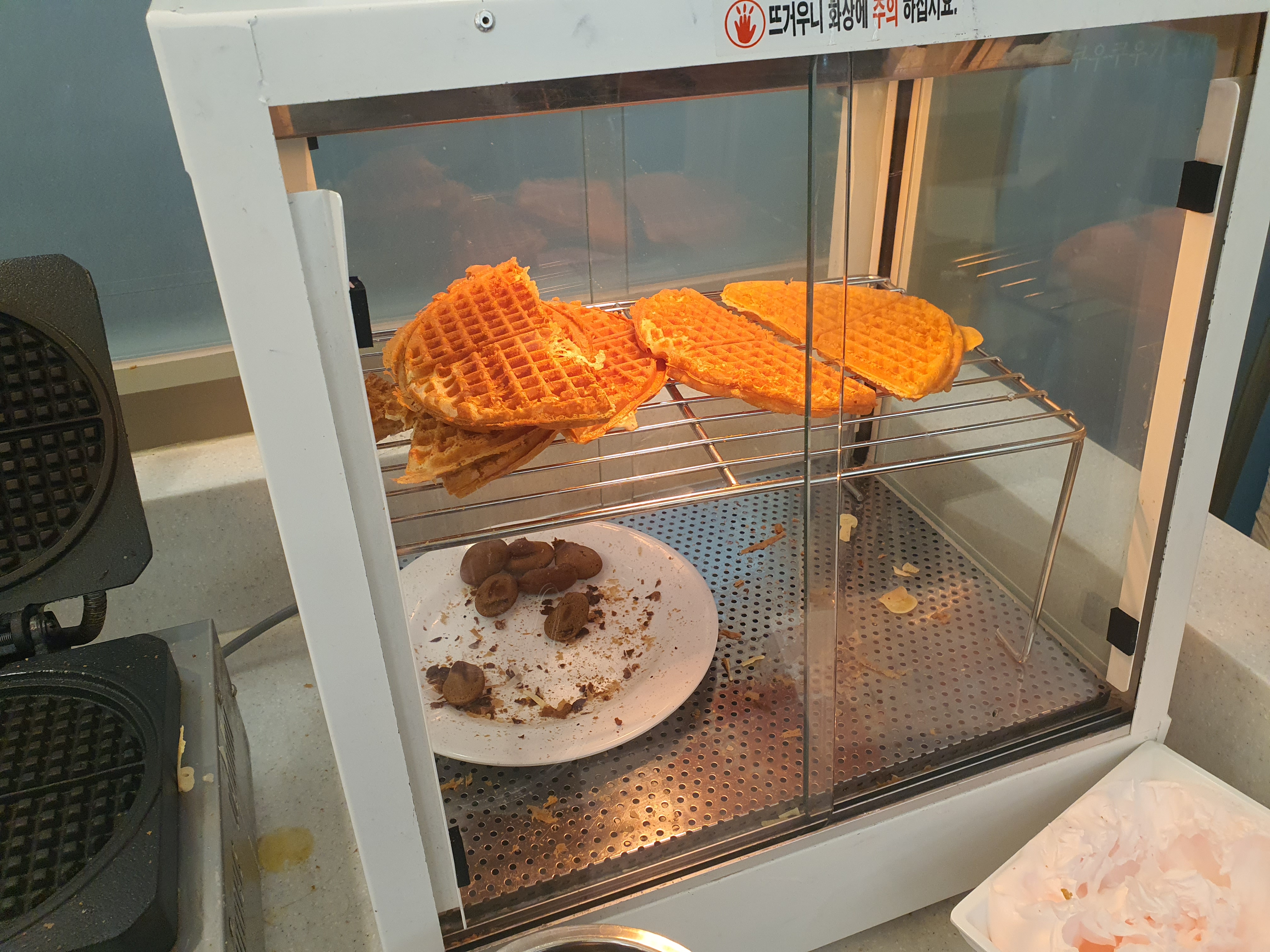 와플기계도 있고 만들어져있는거를 먹어도 되고 본인이 직접 해서 먹어도 됩니다.