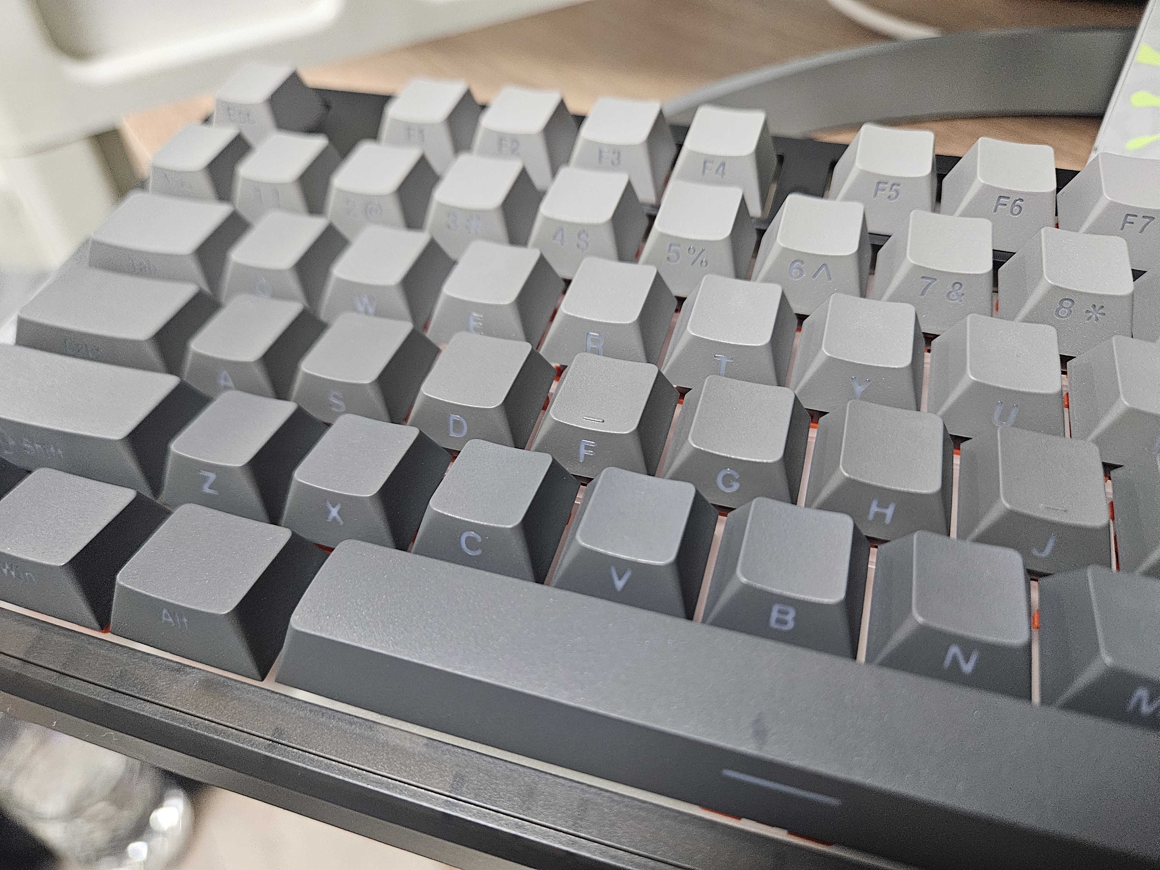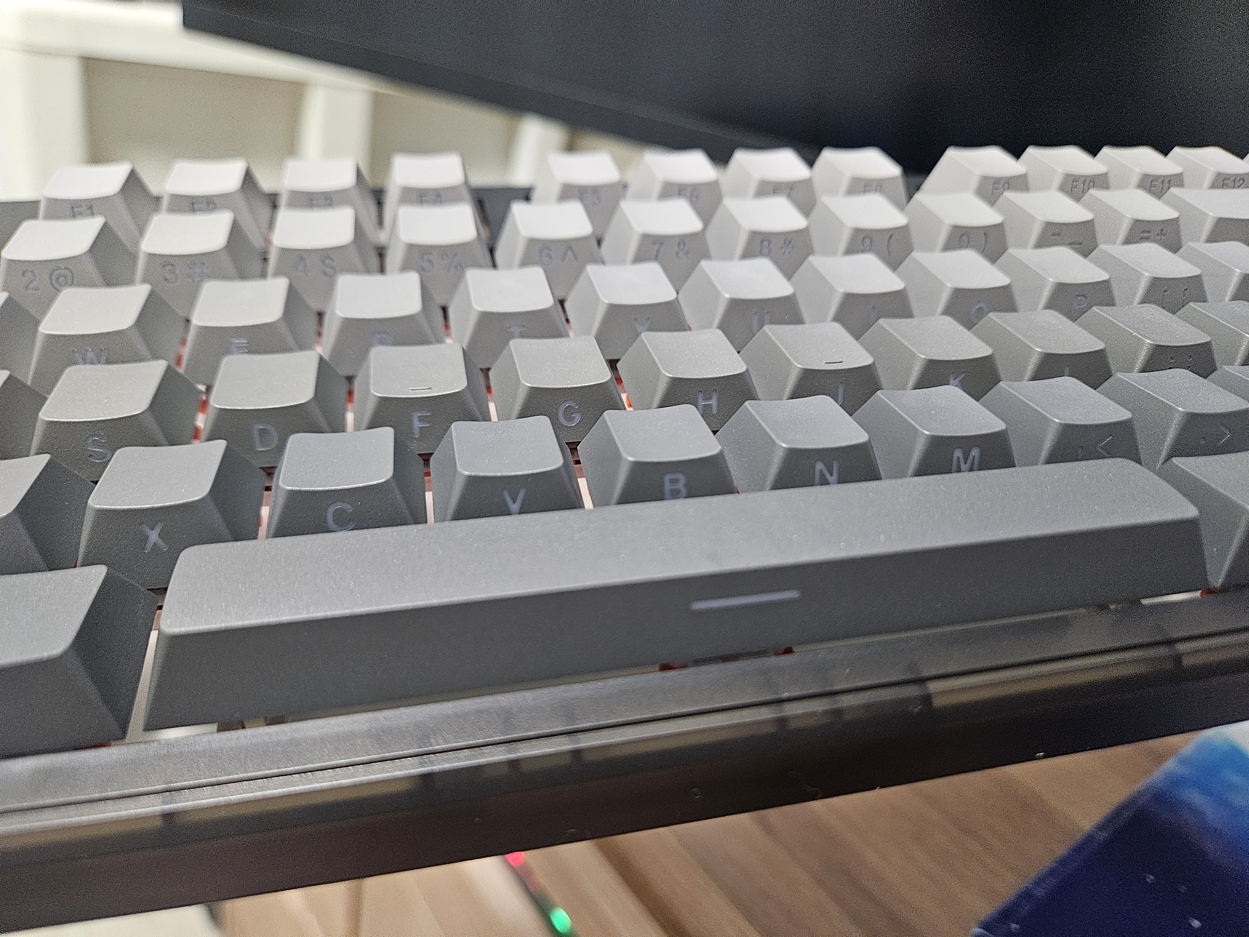 키보드를 들고 봤을때 키캡 각인이 측면에 되있어서 전혀 보이지 않습니다.