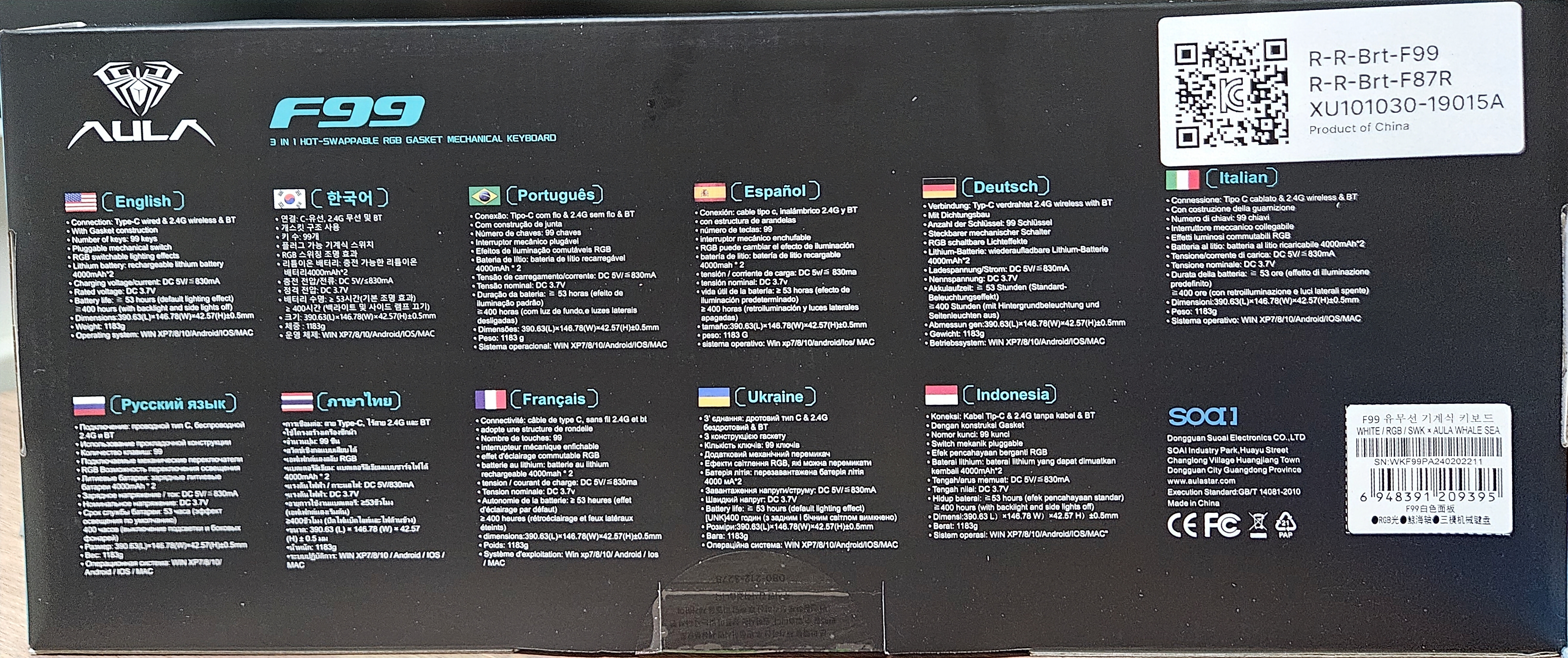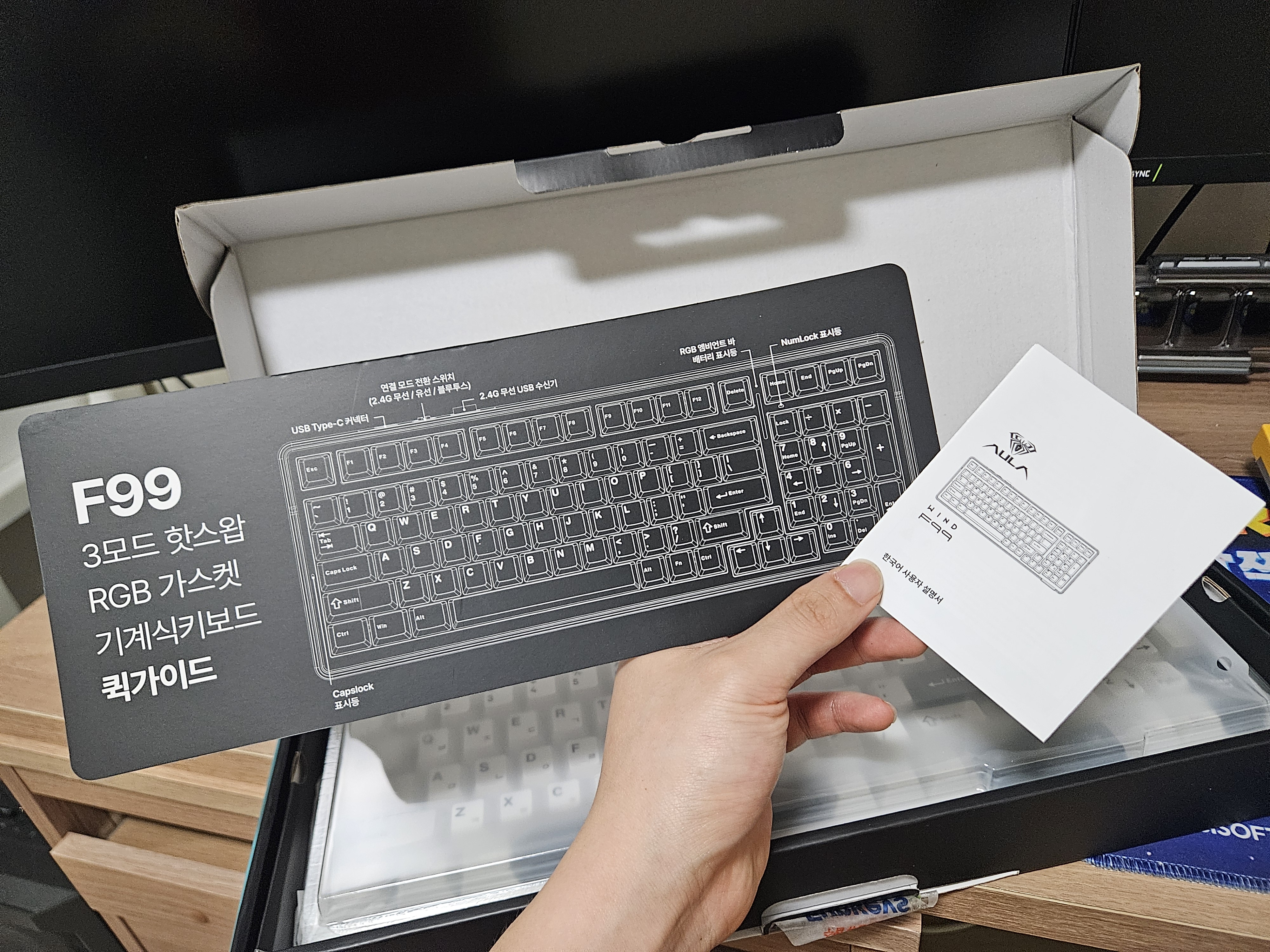 AULA F99 경해축(화이트) 정발 제품을 구매했떠니 퀵가이드랑 설명서가 한국어라 좋긴좋네요!