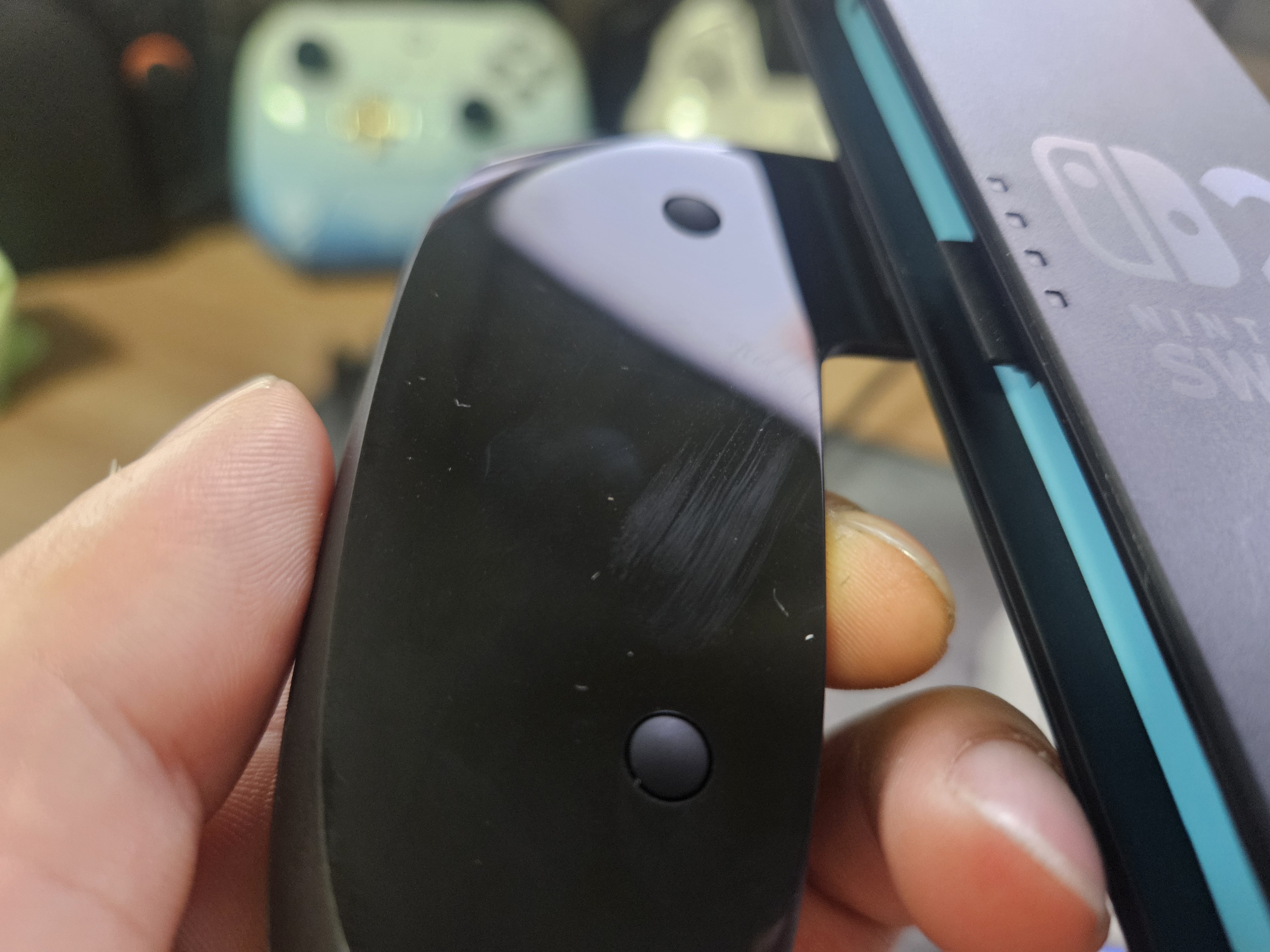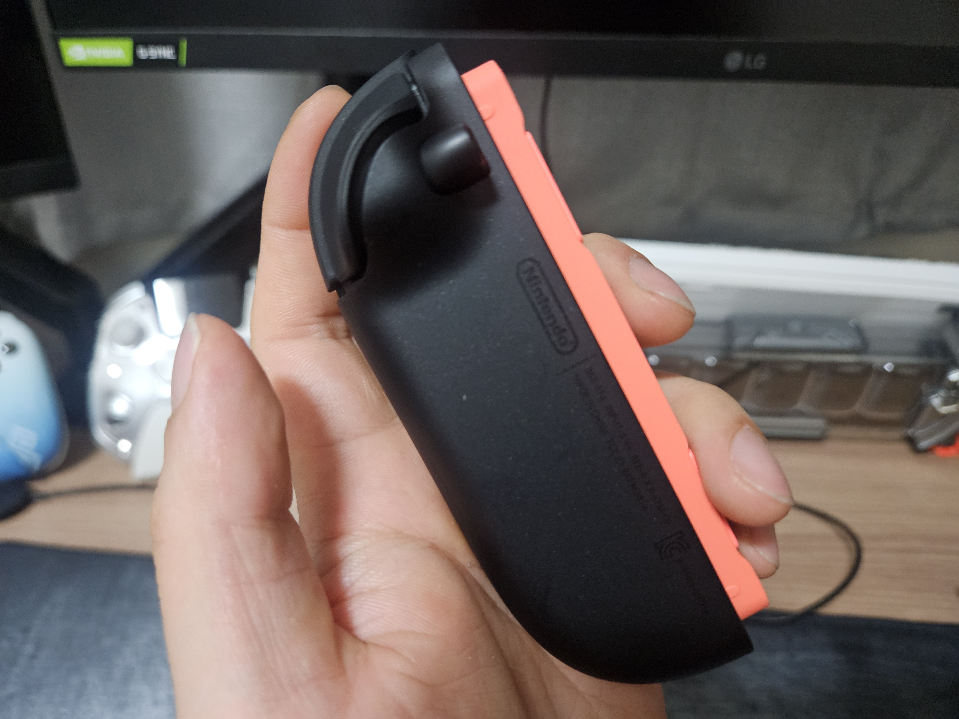 억지로 땔려고 해도 빠지지 않는 구조이며 조이콘을 빼고 싶을땐 조이콘 뒤에 있는 버튼을 눌러 탈거하면 됩니다.