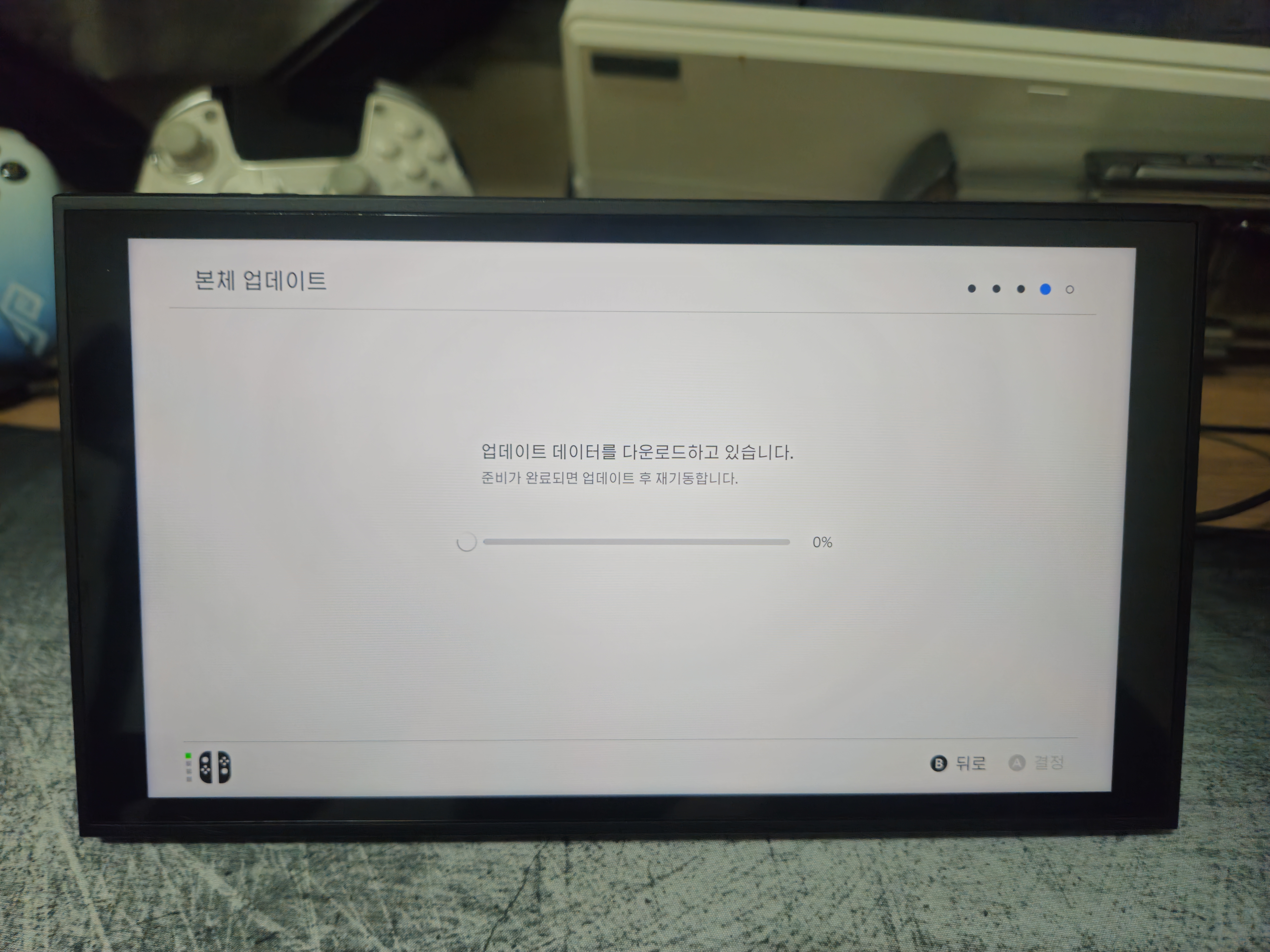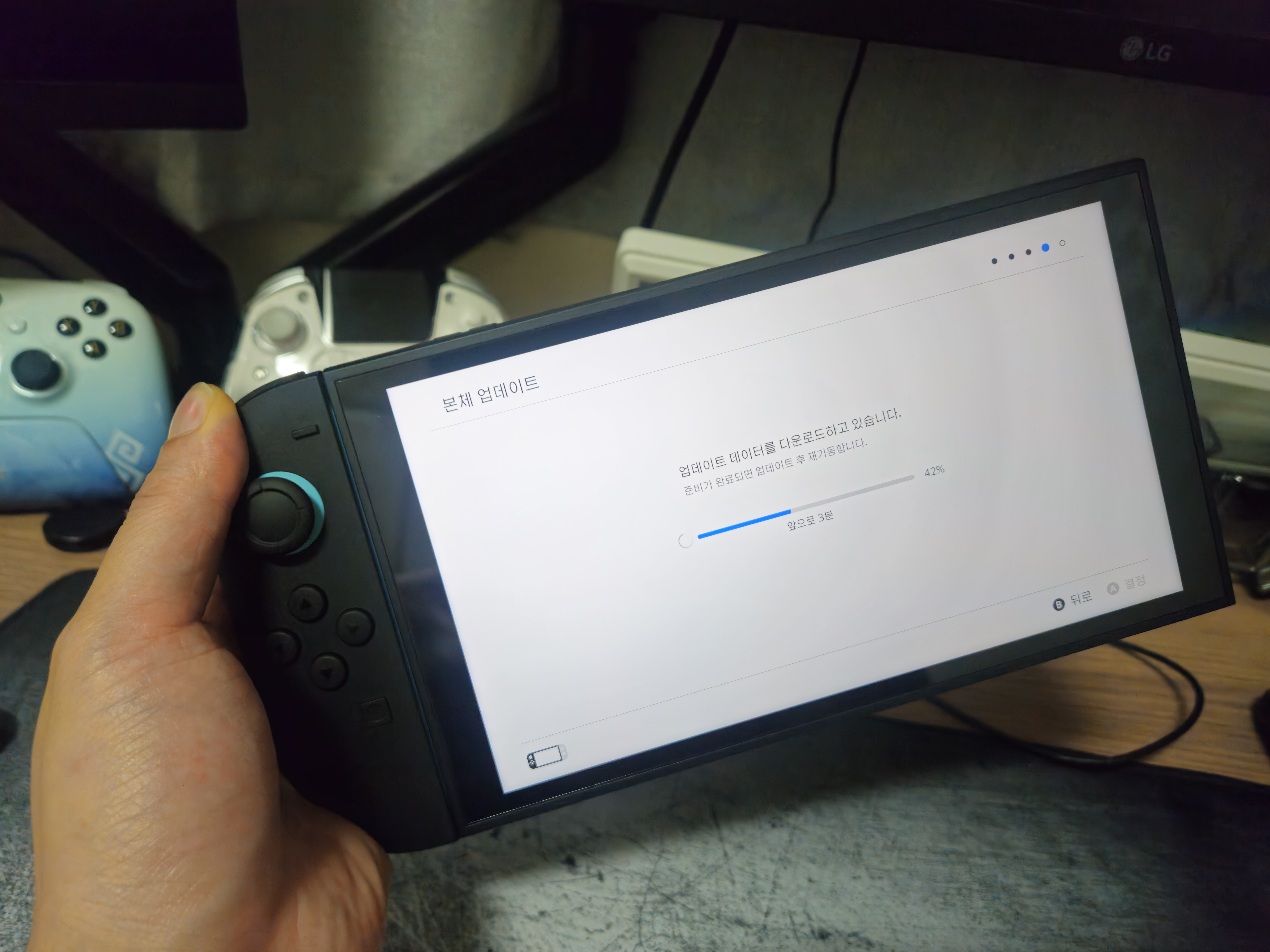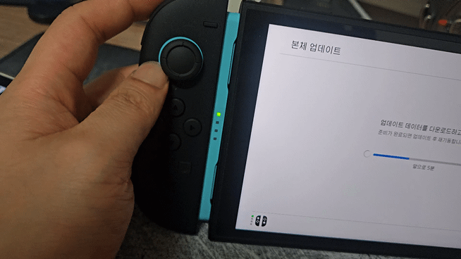 전원을 키면 지역설정과 업데이트 데이터를 하고 조이콘을 결착하고 해야 사용할수 있습니다.