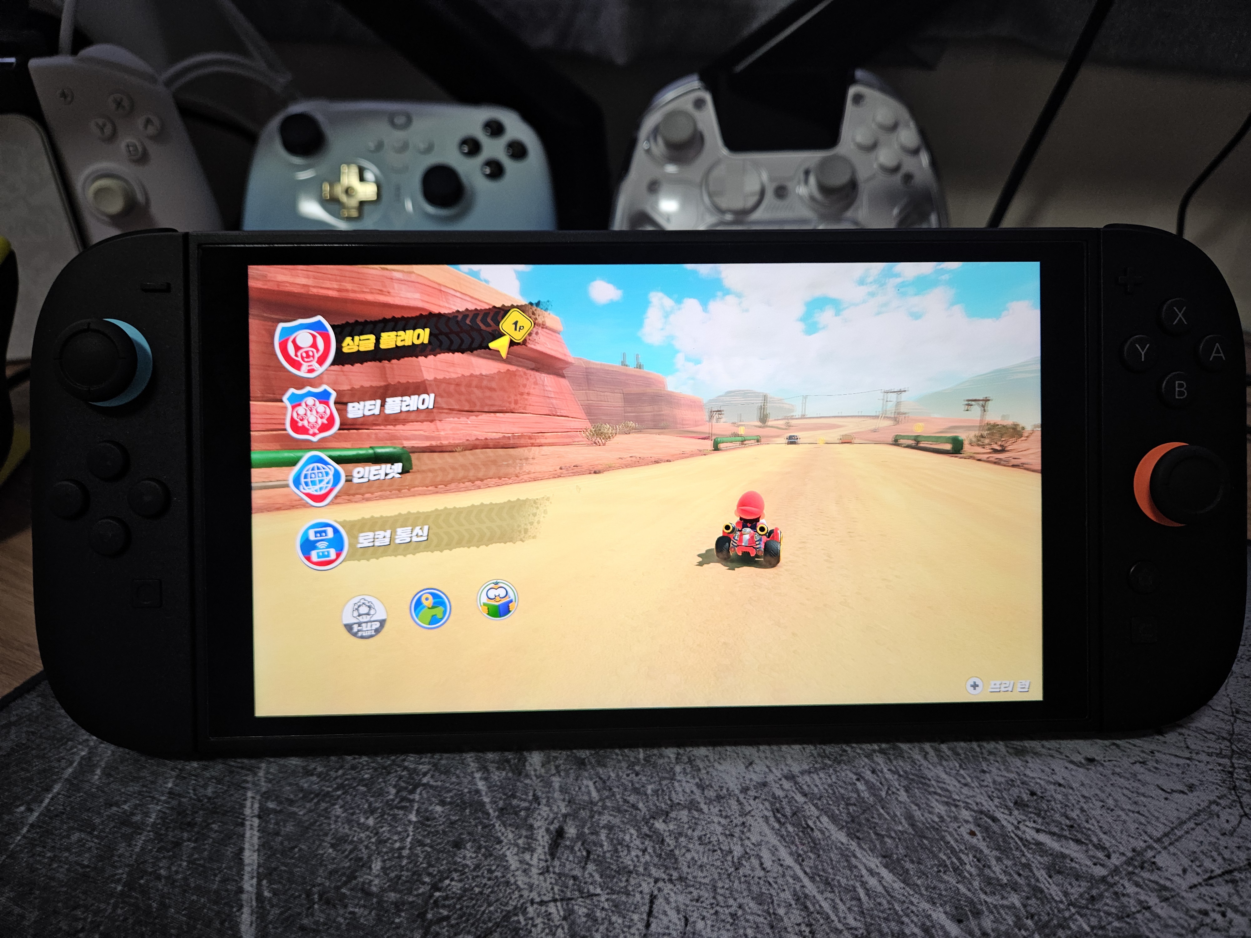 원래 마리오카트를 잘안했던지라 마리오카트 세트를 구매하지 말까...하다가 따로 구매하면 게임 가격이 8만원이상이기 때문에 세트로 구매하는게 현명한 선택이라 생각하고 선택했습니다!