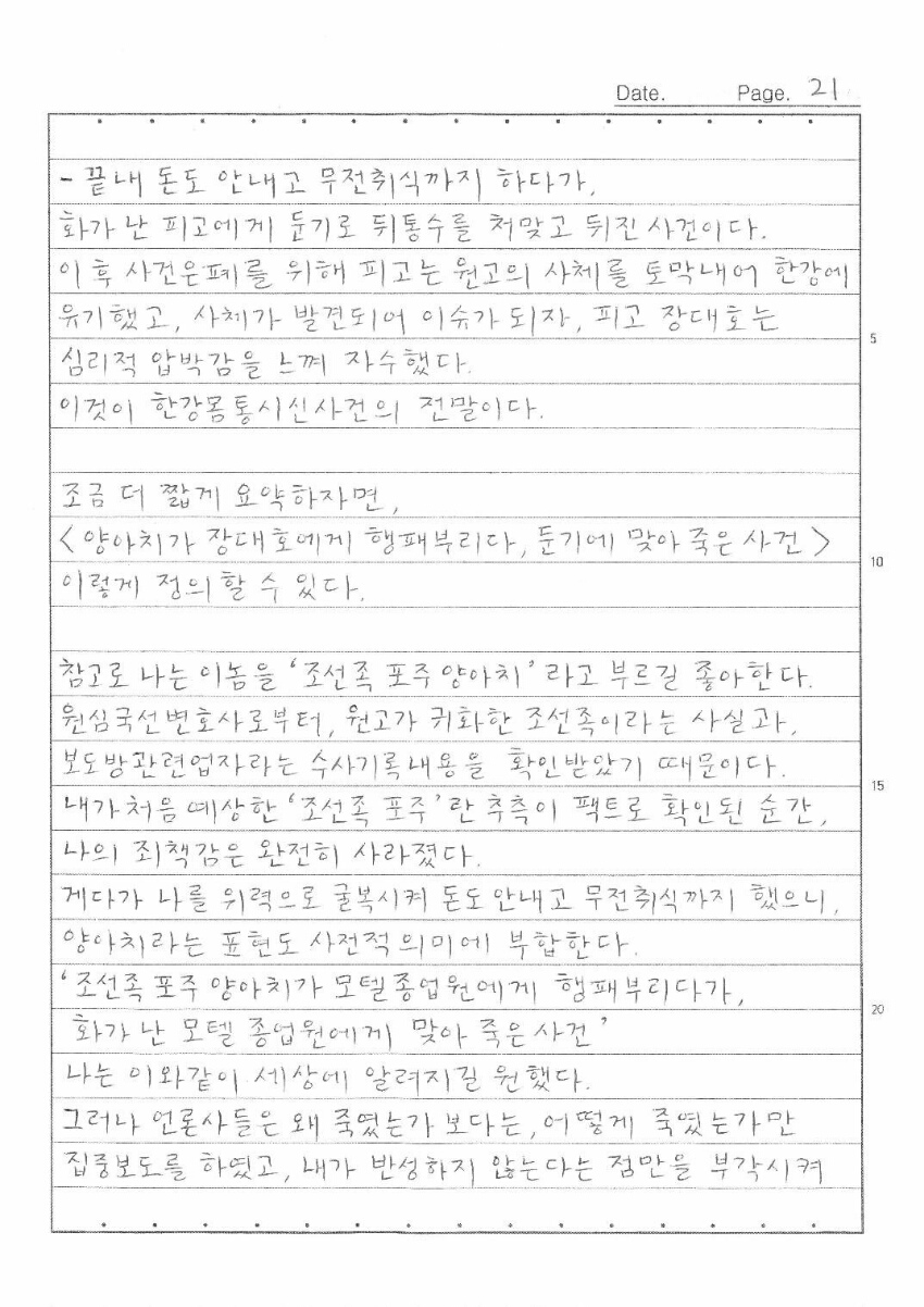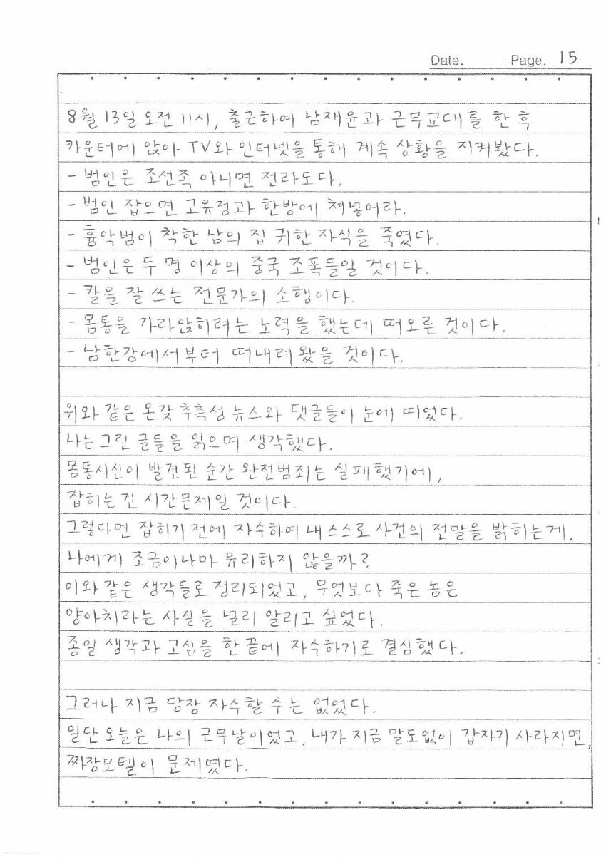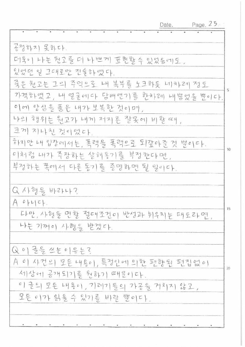 장대호의 옥중 회고록을 끝으로 이번 사건 리뷰를 끝마치겠습니다.