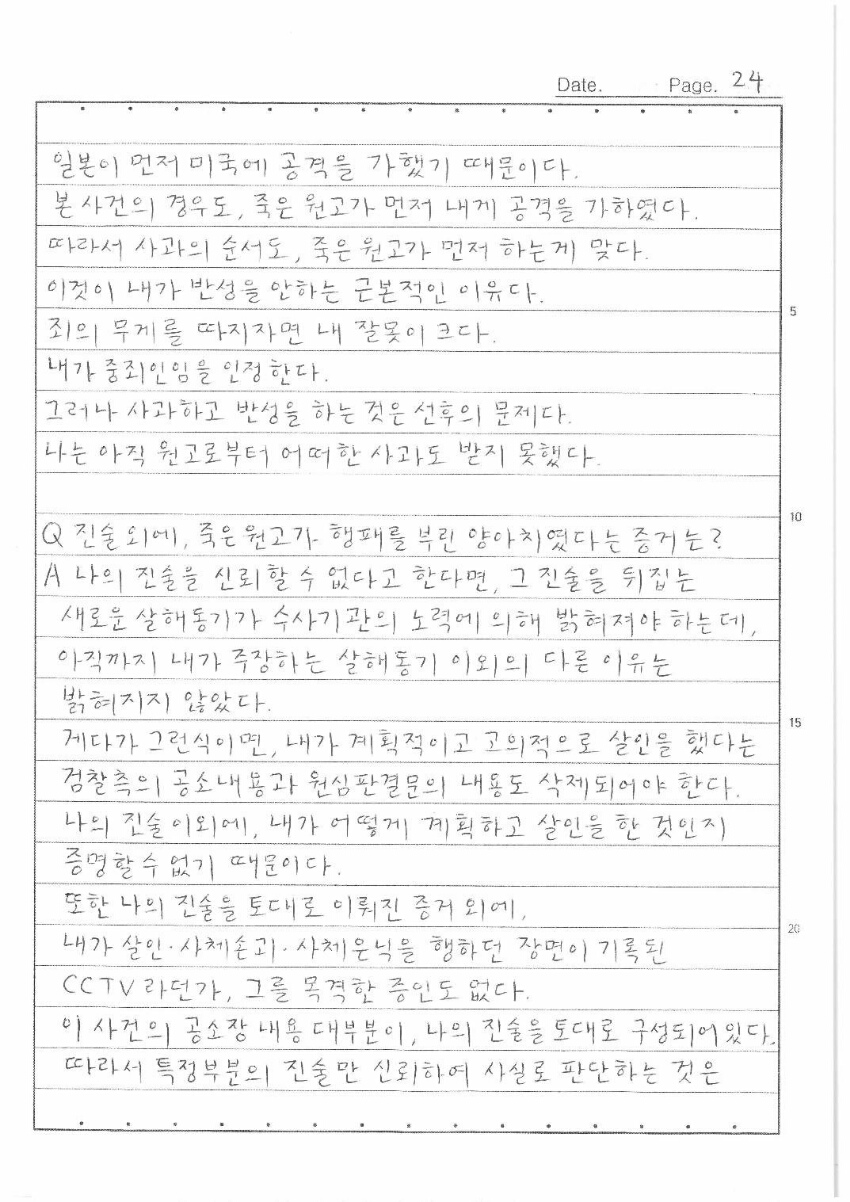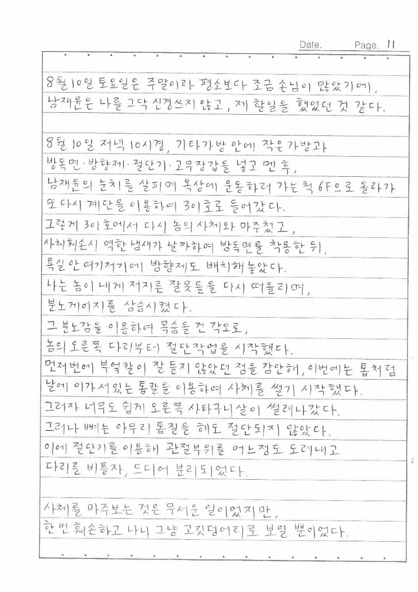 " 유족에게 전혀 미안하지 않으며, 다음 세상에 다시 태어나도 또 나에게 죽을것이다 " 라고 말해