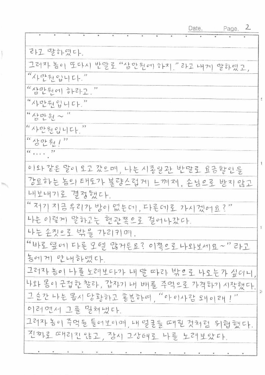 주먹으로 승부를 보는 스타일이었다면 진작 모텔 카운터에서 계산문제로 싸웠을때 싸웠을거라 생각이 듭니다.